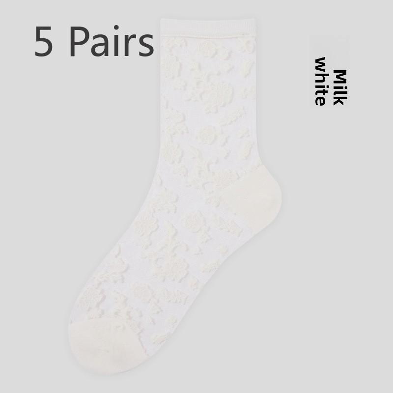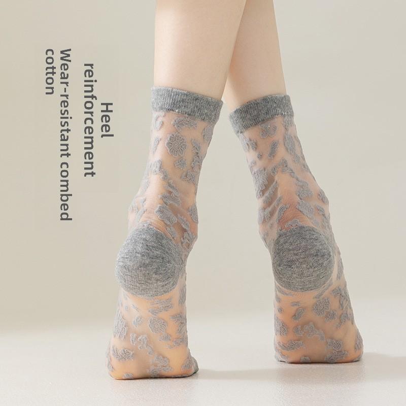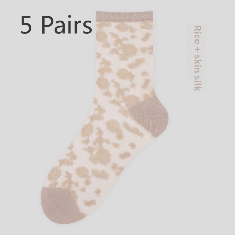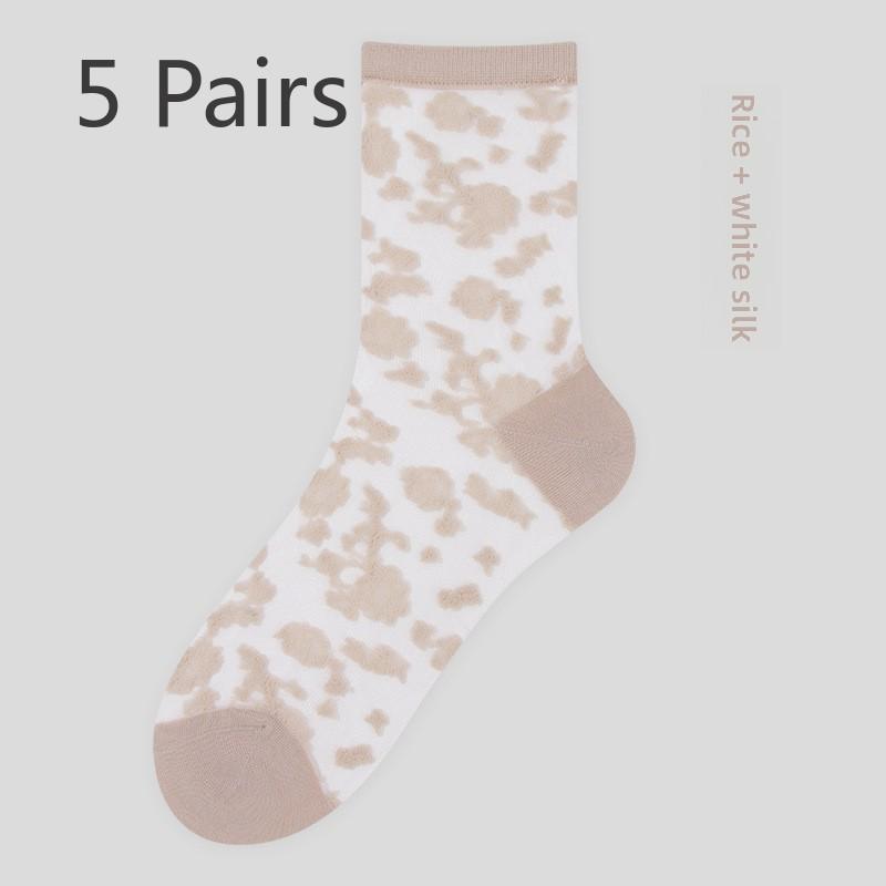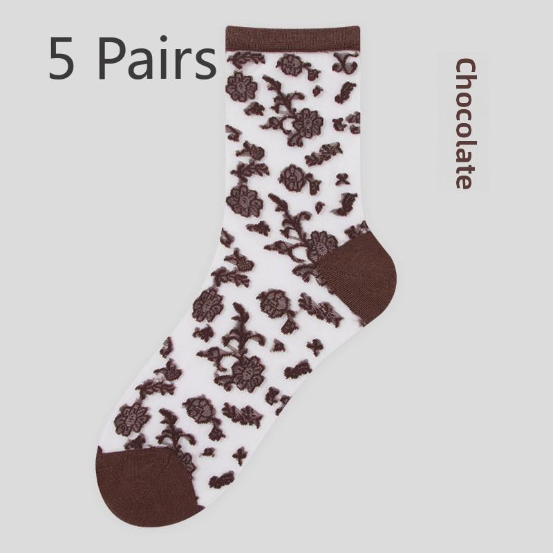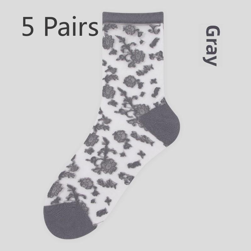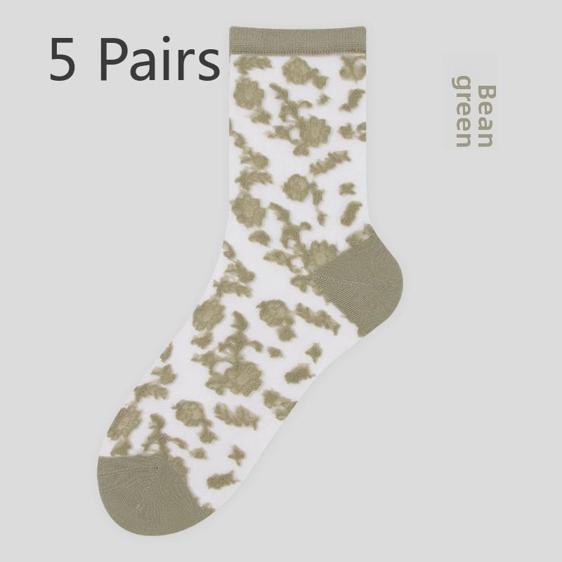 5 пар весенних и летних кружевных чулок Чулки средней длины для женщин Чулки с кристаллами Балетные ветрозащитные носки для женщин Весенние и летние носки