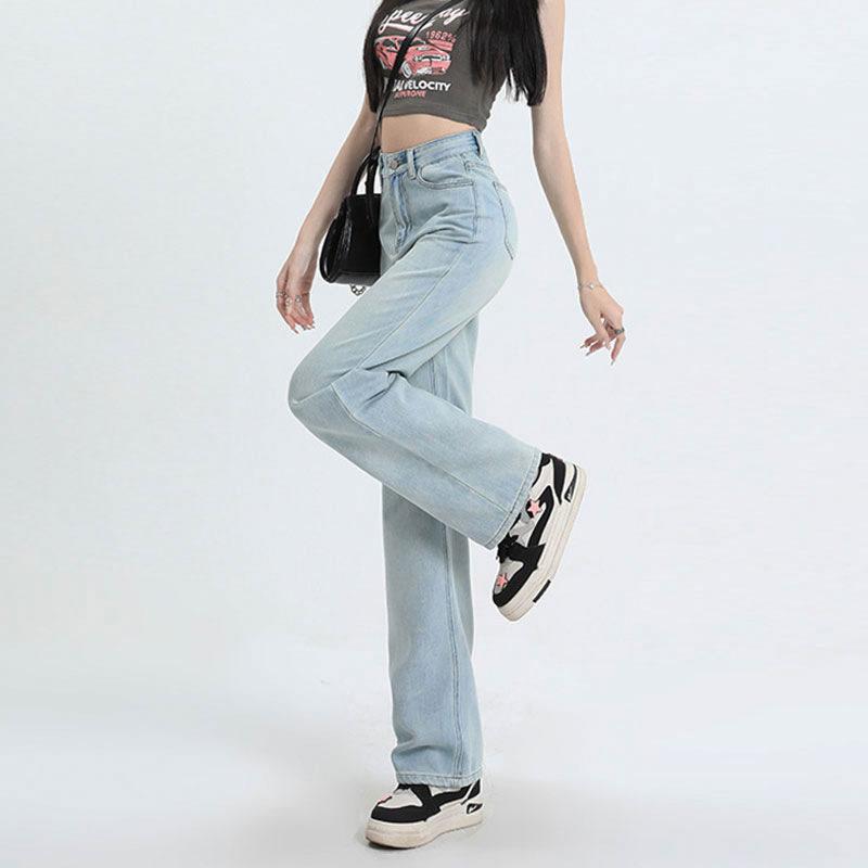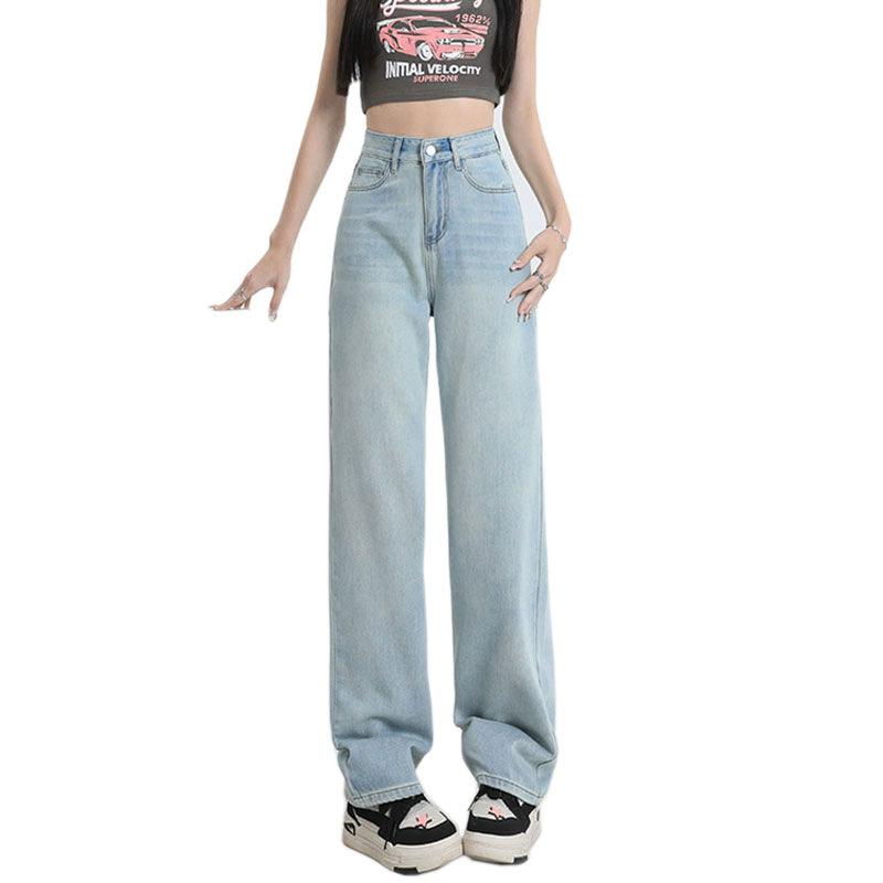 Джинсы Прямые женские брюки с высокой талией Свободные тонкие повседневные широкие брюки с широкими штанинами