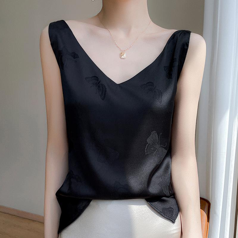 Шелковая майка для женщин, весенне-летний короткий жаккардовый костюм с v-образным вырезом, топы наизнанку, жилеты-бретельки