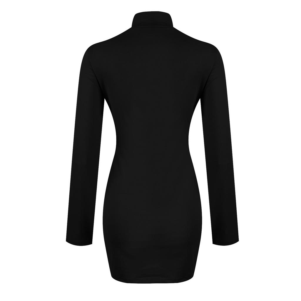 Женская мода с запахом, с длинным рукавом, тонкие однотонные платья с высоким воротом