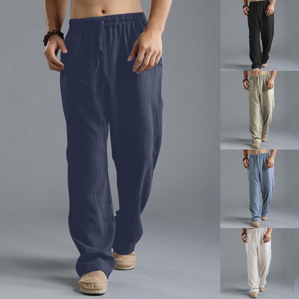 Мужские повседневные брюки больших размеров со свободным шнурком, льняные дышащие спортивные брюки для мужчин — купить товар онлайн с бесплатной доставкой до всему миру!