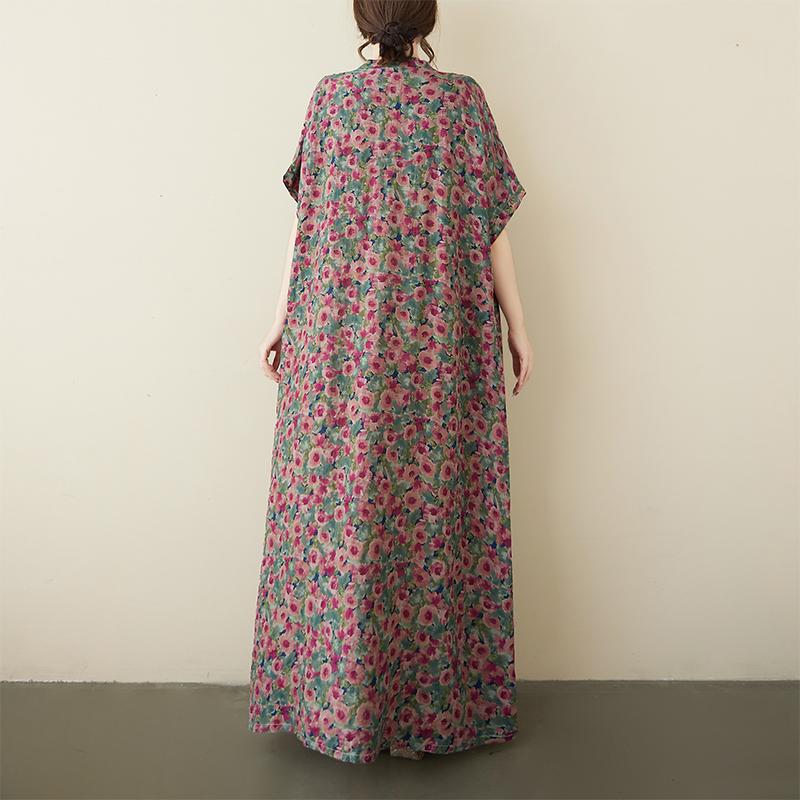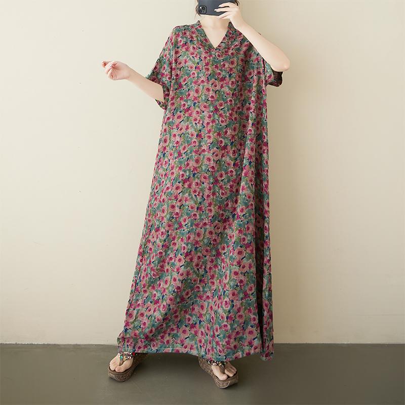 DIMANAF Plus Size 2025 Женское летнее повседневное платье с коротким рукавом Базовое свободное платье с V-образным вырезом и цветочным принтом Новое