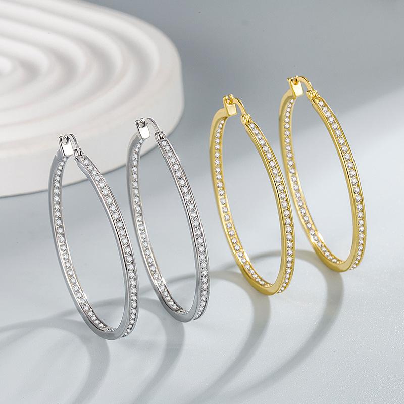 Серьги-кольца из 18-каратного золота с дизайном большого круга, персонализированные, модные, в стиле легкой роскоши, слегка инкрустированные бриллиантами