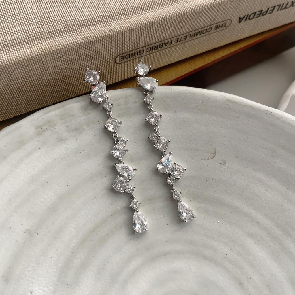 Серьги-капли из циркона Женские 2025 Легкая роскошь Нишевый дизайн Чувство продвинутого темперамента Элегантные серьги для знаменитостей
