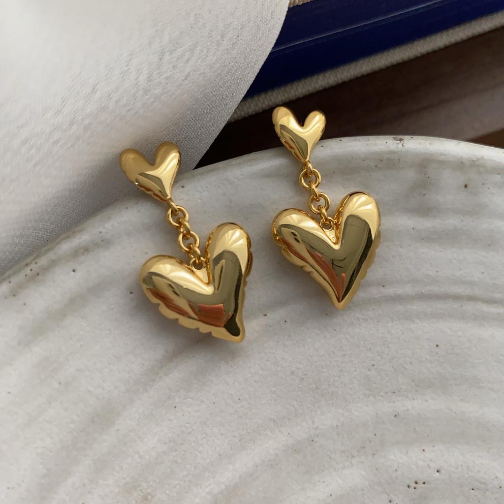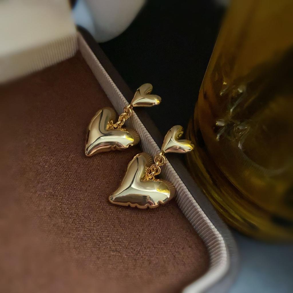 Премиальные изысканные трехмерные позолоченные серьги-гвоздики Love Sweetheart Retro Luxury Fashion Peach Heart Temperament Универсальные серьги