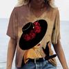 S-5XL Большие размеры Топы с принтом Женская футболка Сексуальный V-образный вырез Короткий рукав Летние женские топы Одежда Уличная мода Женские пуловеры