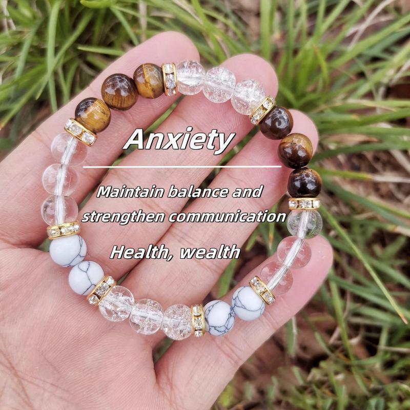 Модный браслет из камня тигровый глаз, белого бирюзового камня, с кристаллами, для здоровья, исцеления, оптимизма и счастья, рождественского подарка для семьи