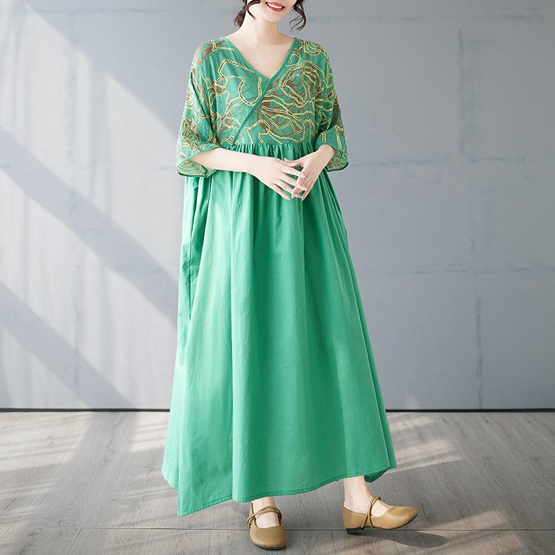 DIMANAF 2025 Лето Новое Платье Большого Размера Базовое Женское Повседневное Свободное Длинное Винтажное Платье Макси с V-образным Вырезом и Плиссировкой — купить товар онлайн с бесплатной доставкой по всему миру!