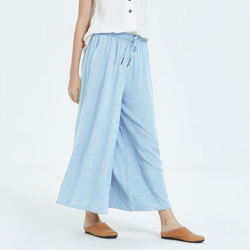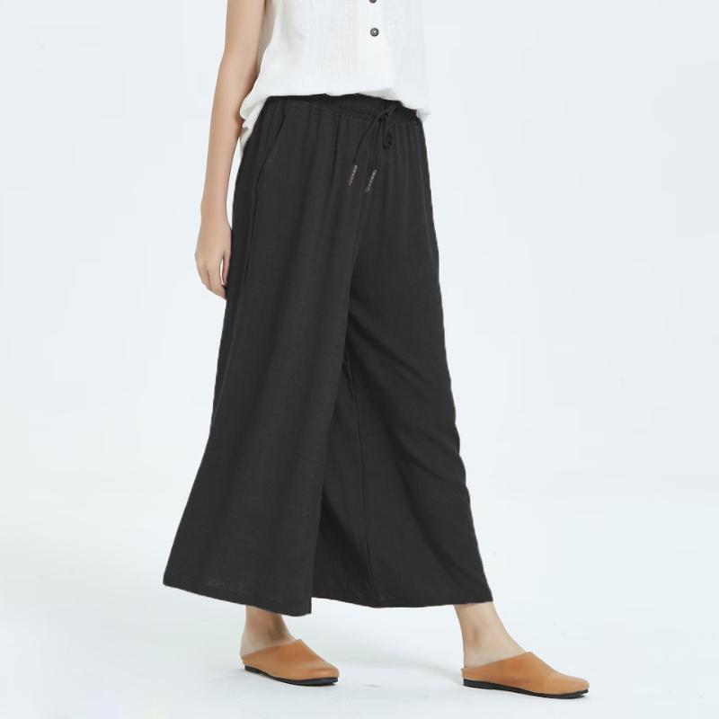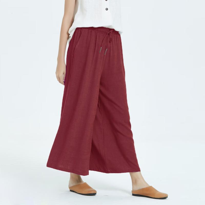 GMXIA Женские весенне-летние цветные хлопковые и льняные свободные повседневные брюки Nine-minute с широкими штанинами