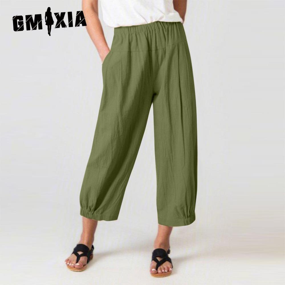 GMXIA Свободные брюки Haren с высокой талией из хлопка и льна, брюки Nine Minute, широкие женские брюки