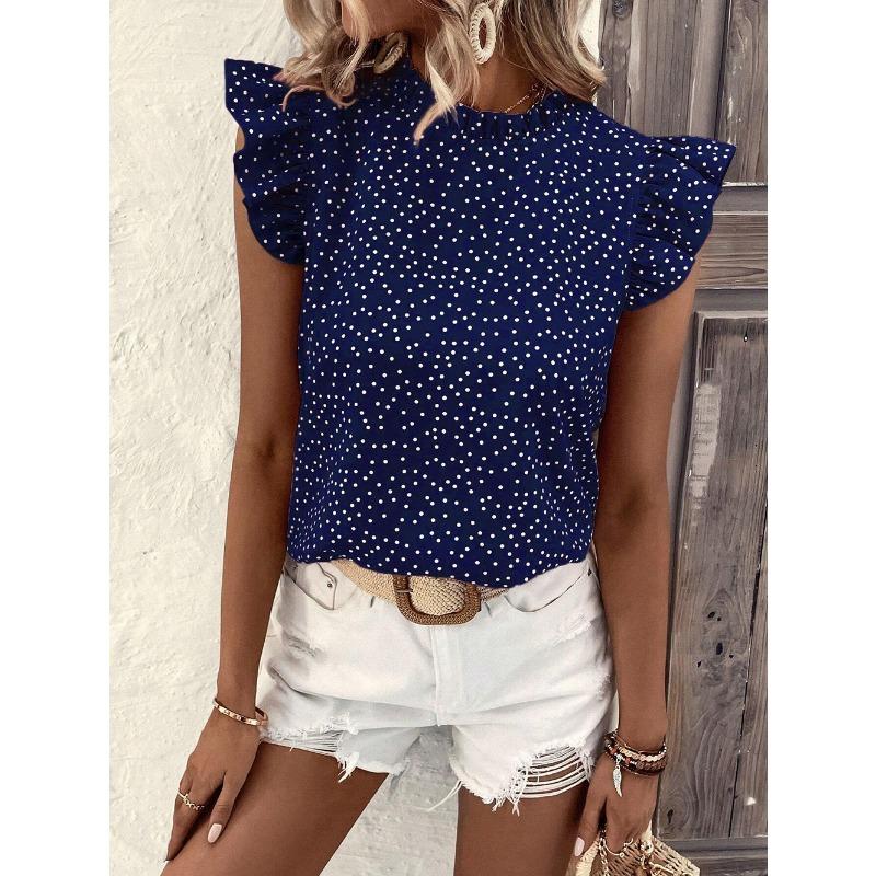GMXIA Женская мода повседневная летняя весна горошек блузки и рубашки без рукавов с круглым вырезом