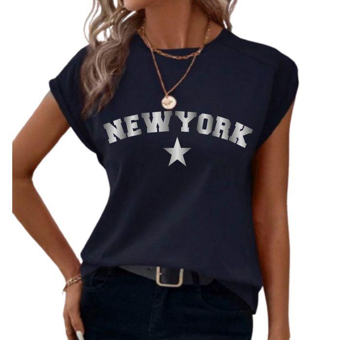 Женская футболка темно-синяя с логотипом Нью-Йорка - - Синий