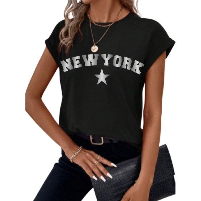 Женская футболка черная с логотипом 'New York' - - Черный — купить товар онлайн с бесплатной доставкой по всему миру!