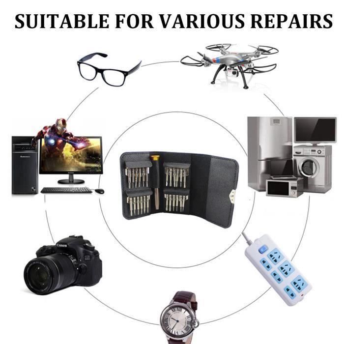 Jeu de Tournevis à Cliquet 25en 1 Kit de Réparation informatique téléphone électronique Wir16