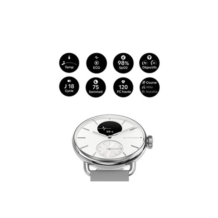 Montre connectée - WITHINGS - ScanWatch 2 - ECG - SpO2 - Température 38mm Blanc