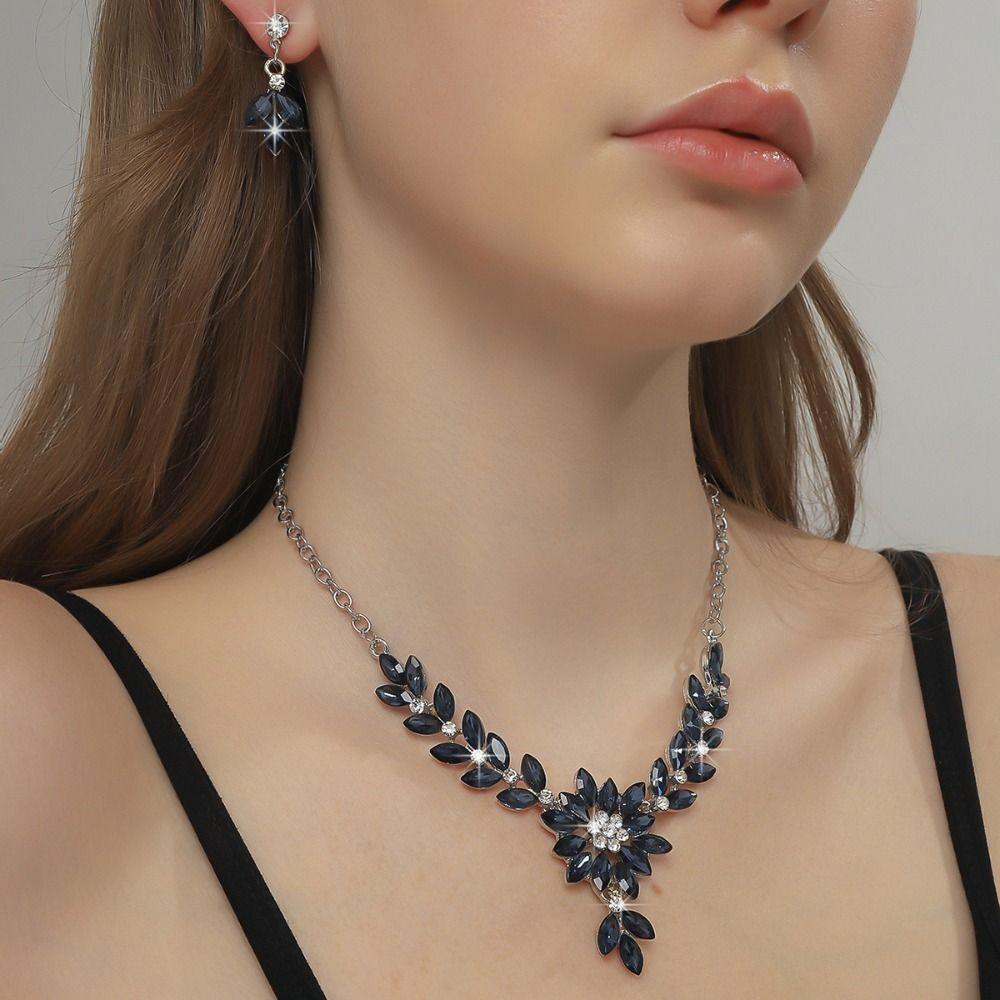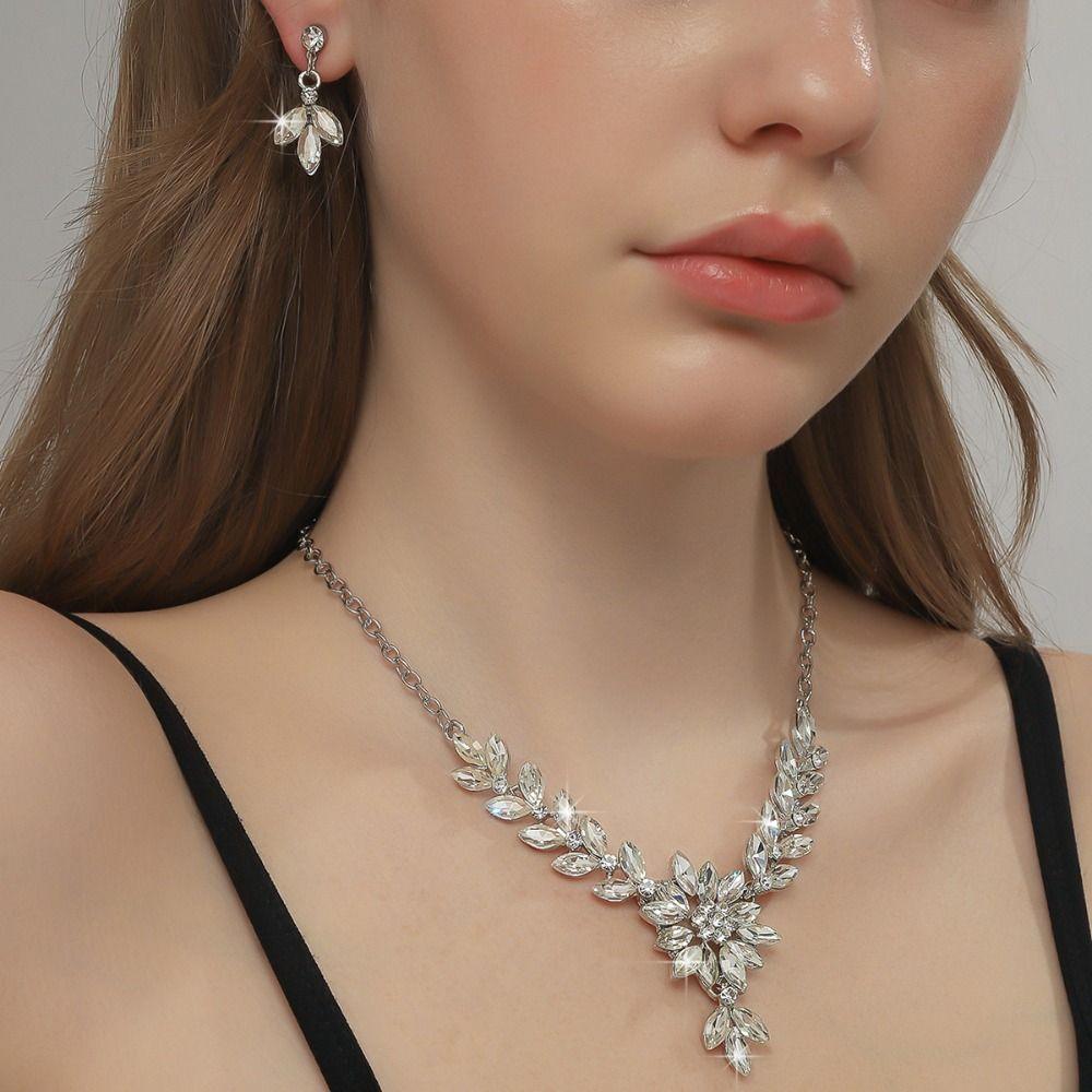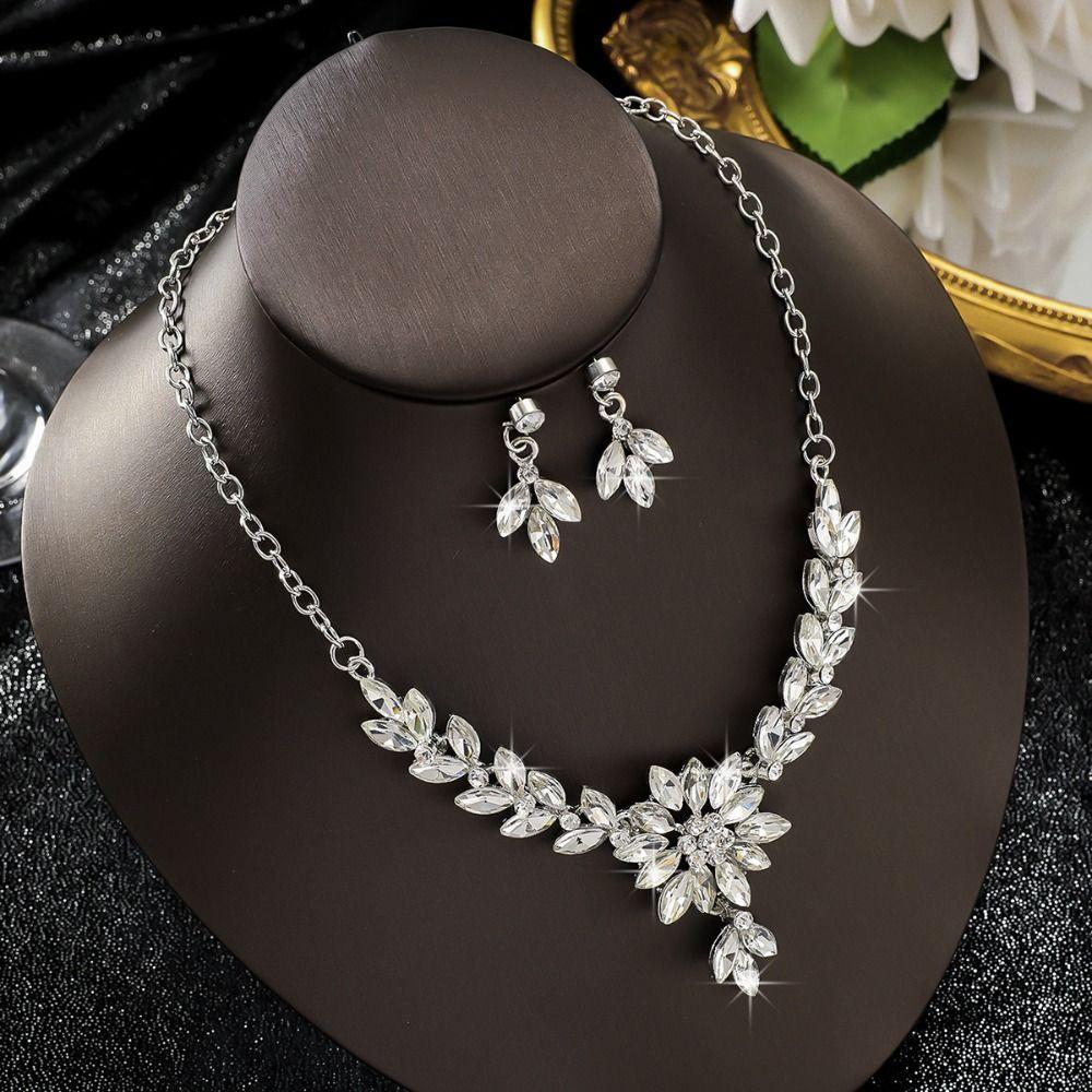 Exquisite Necklace Earrings Set Shining Crystal Necklace Set Princess Rhinestone Jewelry Set Women
