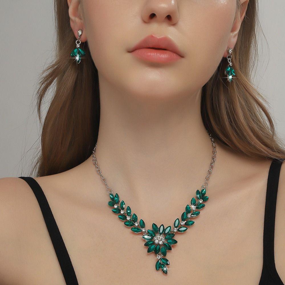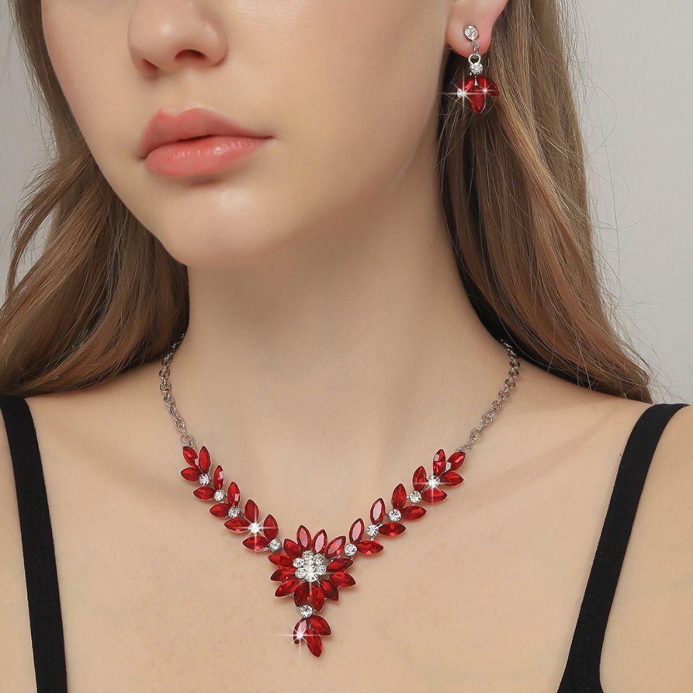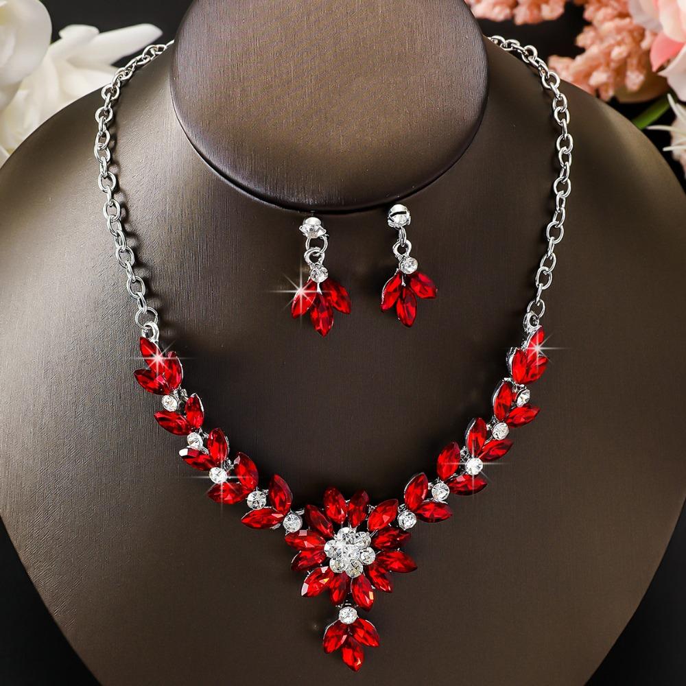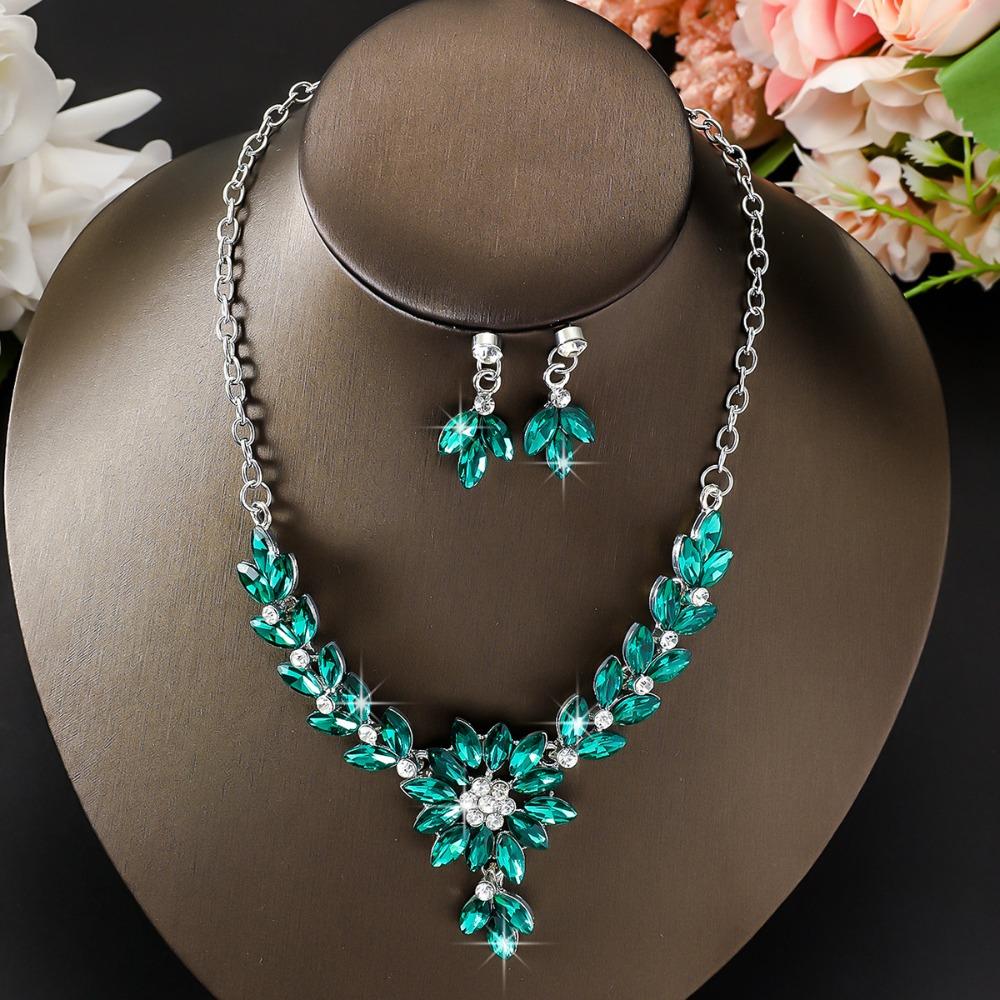 Exquisite Necklace Earrings Set Shining Crystal Necklace Set Princess Rhinestone Jewelry Set Women