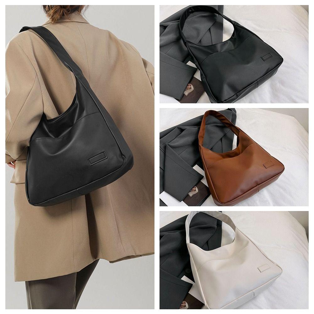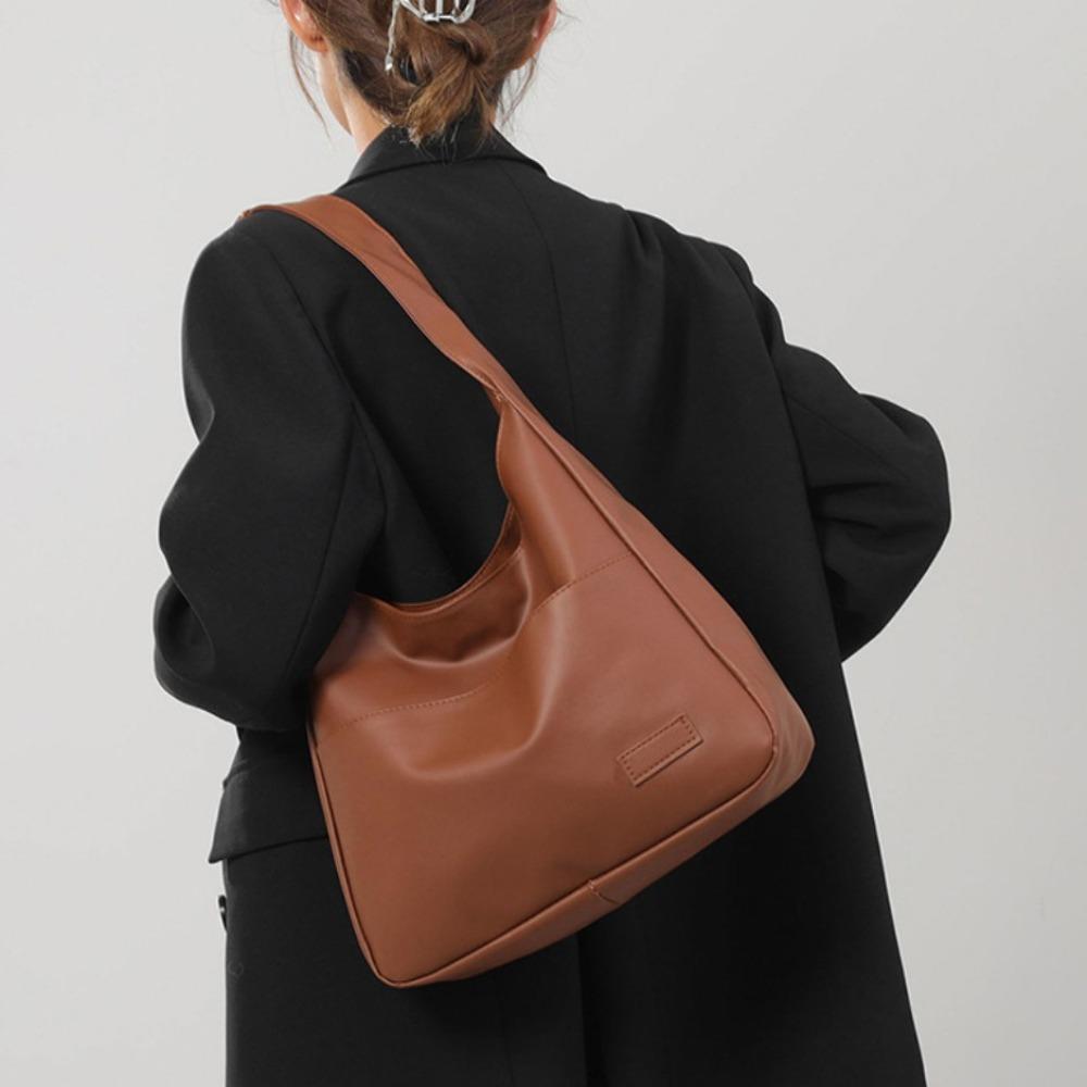 Solid Color Bucket Shoulder Bag Large Capacity Women Handbag Elegant PU Leather Tote Bag Commute
