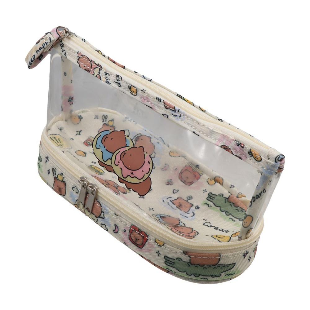 Cartoon Student Pencil Pouch Canvas Stationery Storage Bag Simplicity Transparent Pencil Case Girl