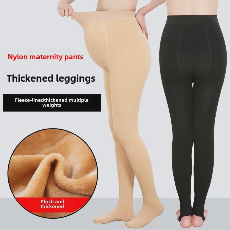 Женские нейлоновые леггинсы для беременных - теплые хлопковые с бархатной подкладкой для осени и зимы, цельные колготки большого размера