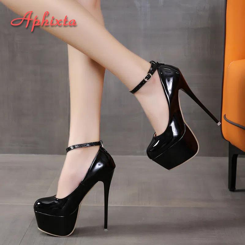 Aphixta Party Disco Dance Pumps Women 5.5cm Platform Girding Buckle 16cm Super High Thin Heels ...