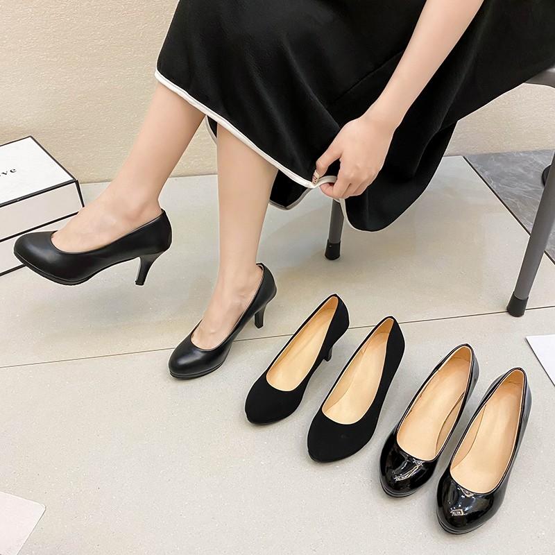 Новые классические профессиональные женские туфли с мелким вырезом, круглым носком, толстой подошвой, нескользящие, черные, на толстом высоком каблуке, рабочие туфли