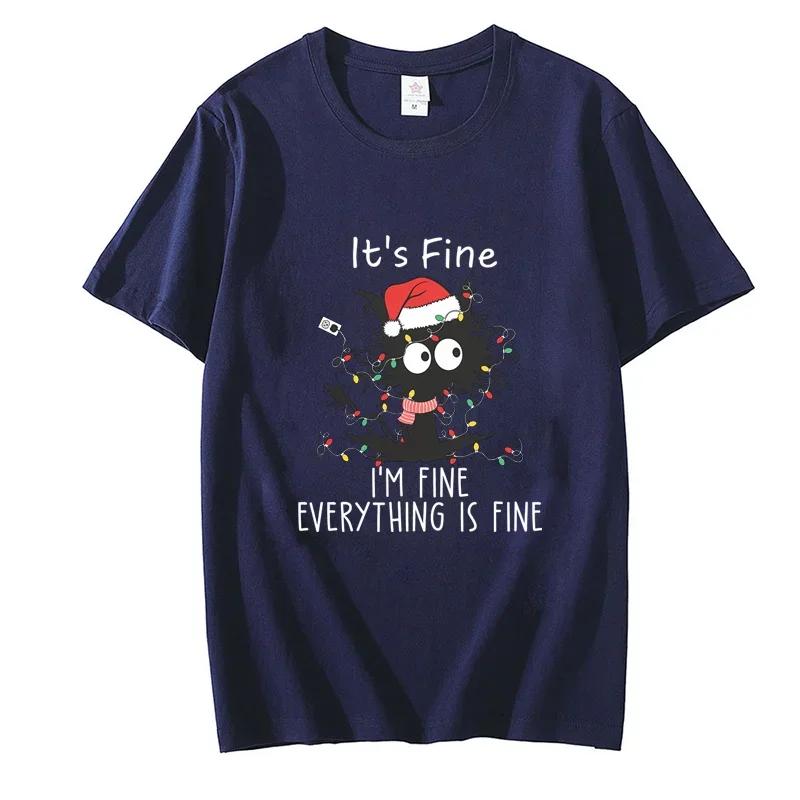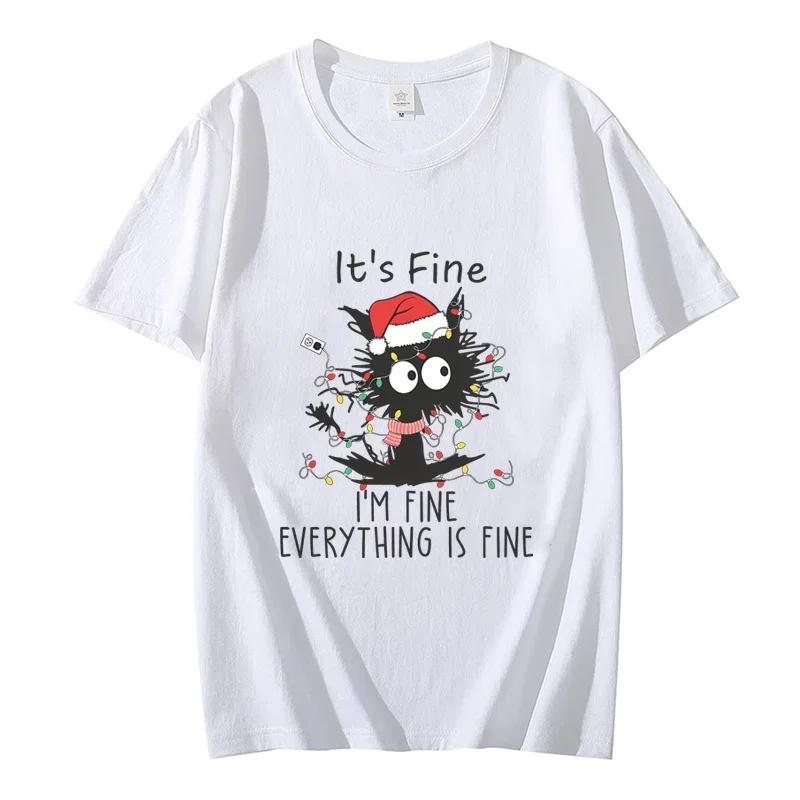 It's Fine I'm Fine Everything Is Fine Black Cat Футболки Для женщин Для мужчин Свитшоты Рождественские огни Счастливого Рождества Harajuku Футболки Топы