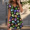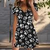 Летняя мода женские V-образный вырез короткий рукав собачий коготь напечатанное платье сексуальные короткие юбки платья