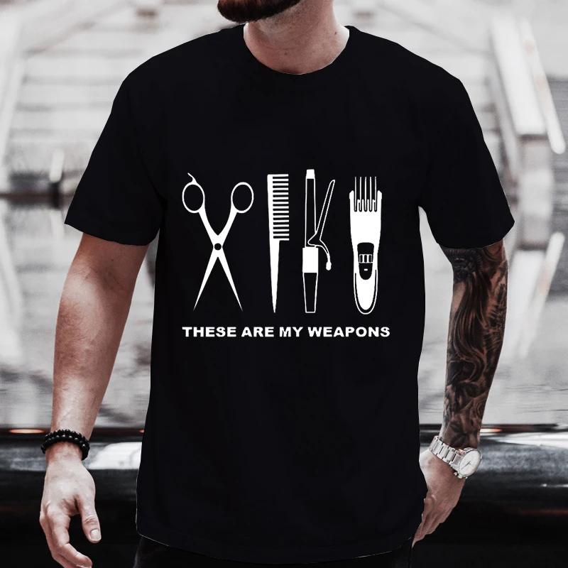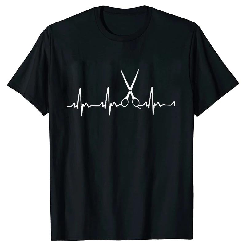 Футболка с изображением оружия парикмахера MWN с коротким рукавом, футболка с круглым вырезом Heartbeat of Hairdresser, свободная футболка, мужская одежда, топы с ножницами