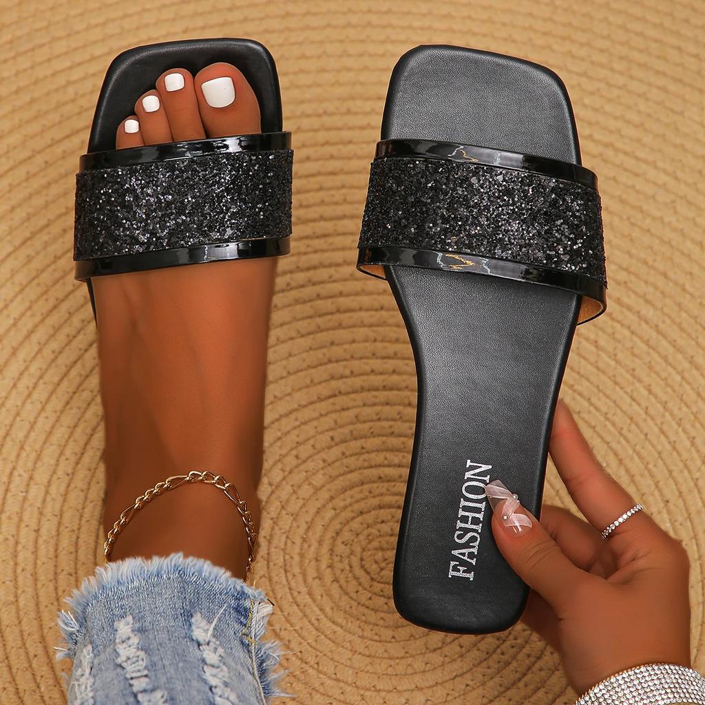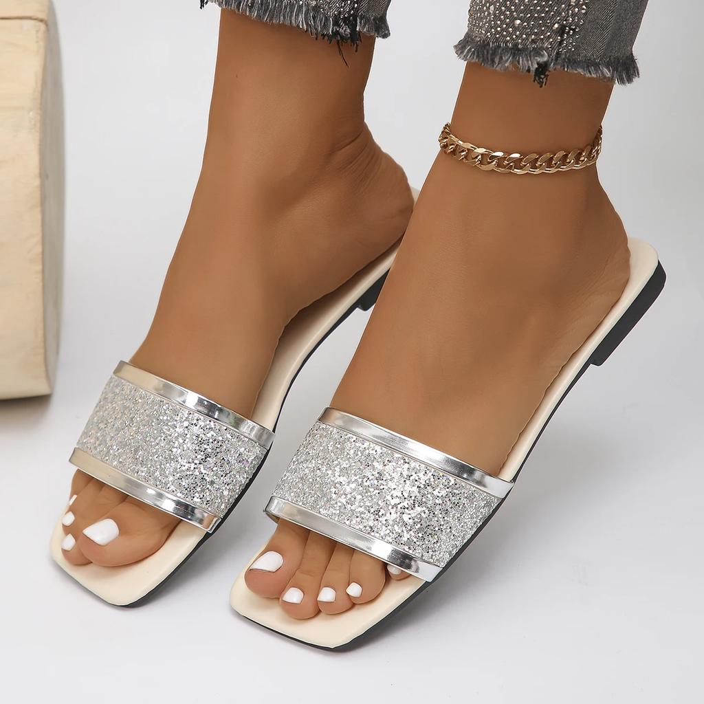 Летние женские тапочки, модные плоские шлепанцы с открытым носком, женские роскошные мюли, пляжные тапочки, повседневные сандалии с квадратным носком, Zapatos De Mujer