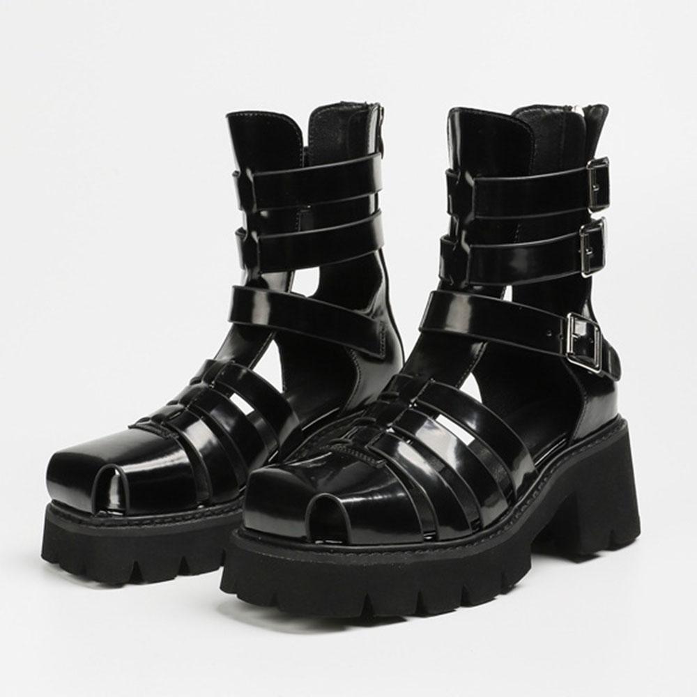 Летние модные женские сандалии в полом римском стиле с квадратным носком, плетеные, дышащие, на толстой платформе, с каблуком-молнией сзади