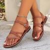 Женские сандалии Новые плоские повседневные сандалии с застежкой-носком Женские римские сандалии с узким ремешком на щиколотке Пляжные дизайнерские туфли для женщин