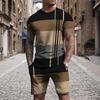 Мужские футболки, костюмы из 2 предметов, футболка и шорты, короткий рукав, круглый вырез, летняя мода с цветными блоками, повседневная одежда из 2 предметов для отпуска, повседневная одежда для выхода в свет, белый цвет