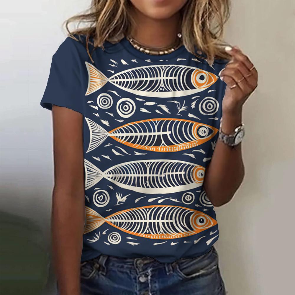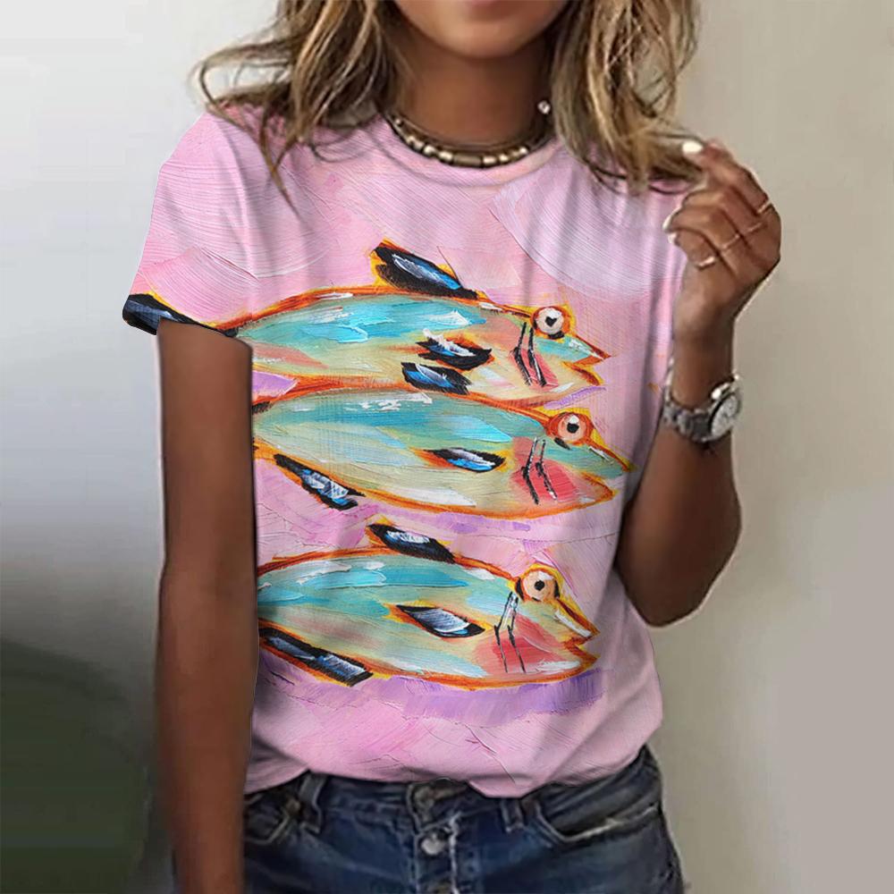 Летний топ с круглым вырезом и принтом 3D-рыб, модные повседневные женские футболки с короткими рукавами