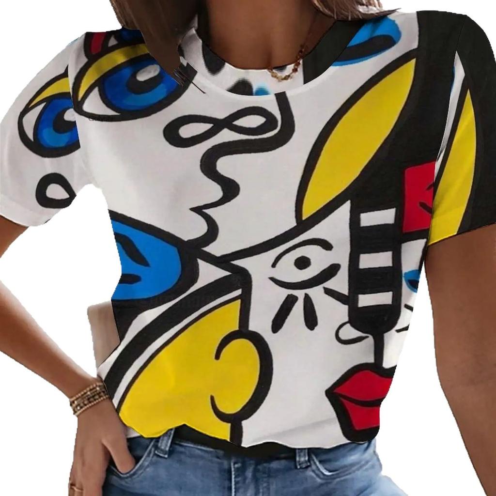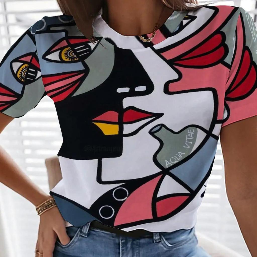 Летний топ с круглым вырезом и принтом абстрактной картины Пикассо в 3D, модные повседневные женские футболки с короткими рукавами