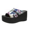 Женские тапочки на танкетке, новые летние босоножки на платформе с цветочным принтом, уличные с открытым носком, на высоком каблуке, тапочки, шлепанцы, женские, Zapatos De Mujer