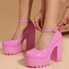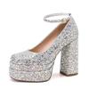 Женские сексуальные туфли на высоком каблуке, туфли-лодочки на платформе, квадратный нос, массивный блочный каблук, туфли для вечеринок со стразами, большой размер 42