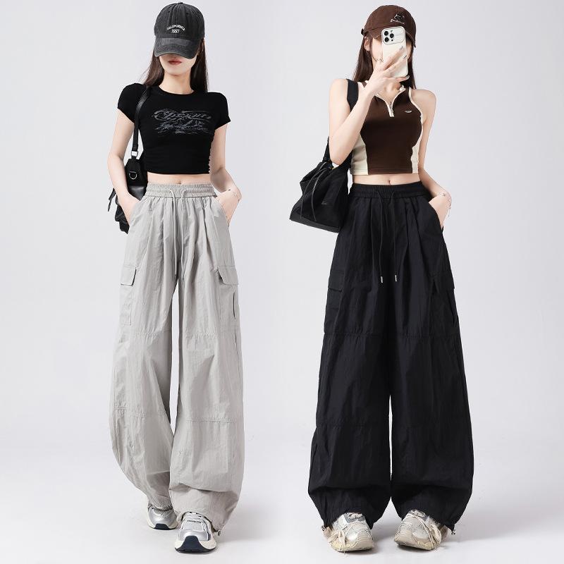Широкие брюки женские летние большого размера толстые тонкие быстросохнущие парашютные американские спортивные прямые брюки