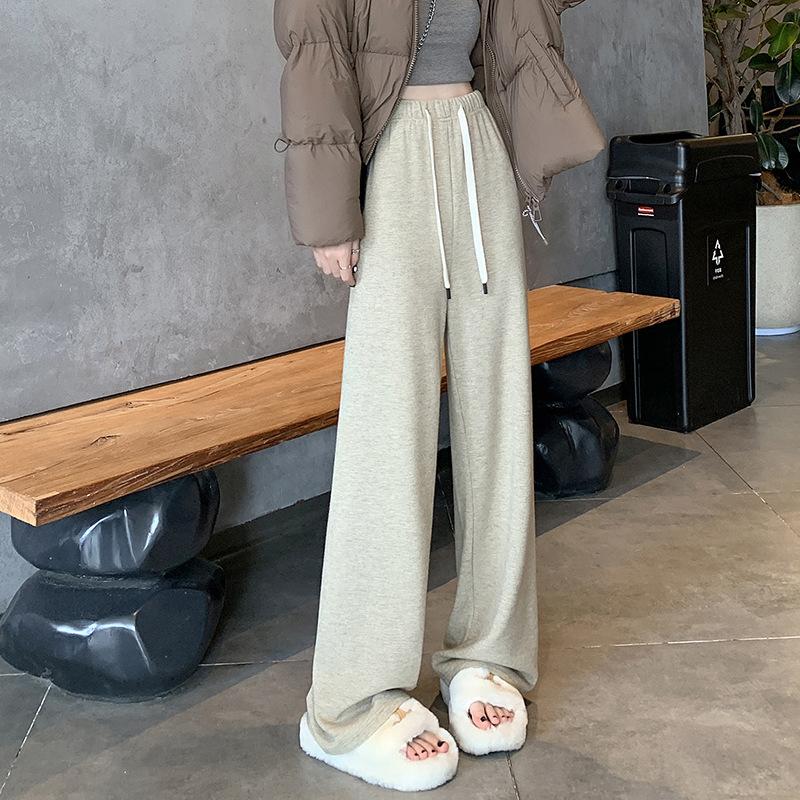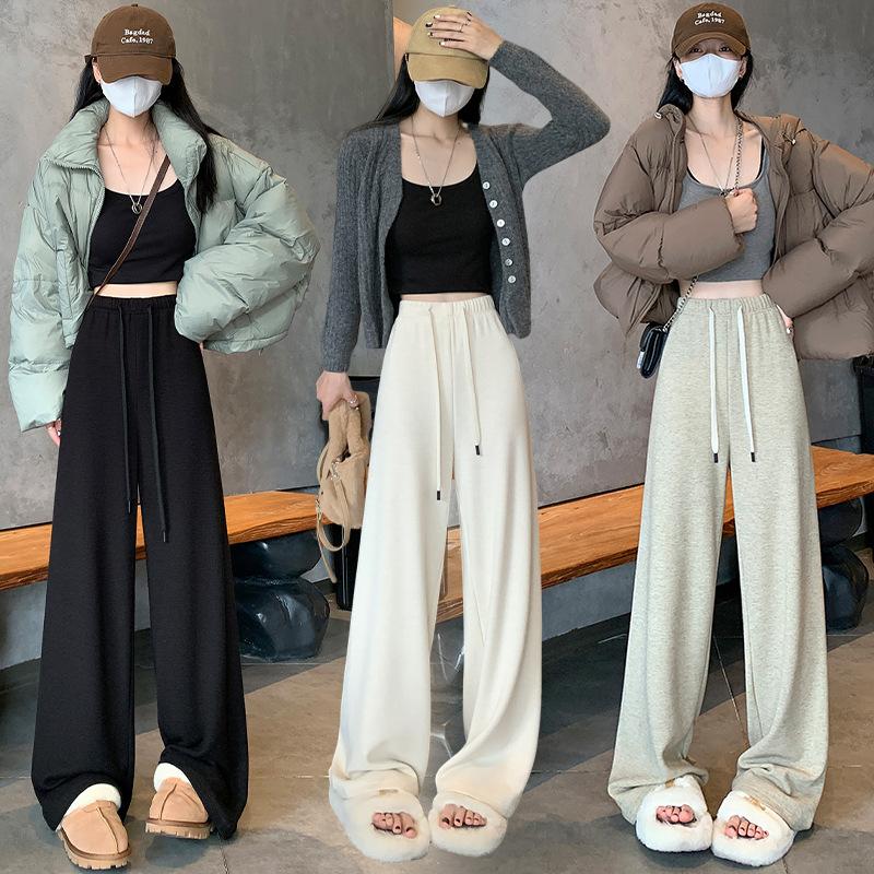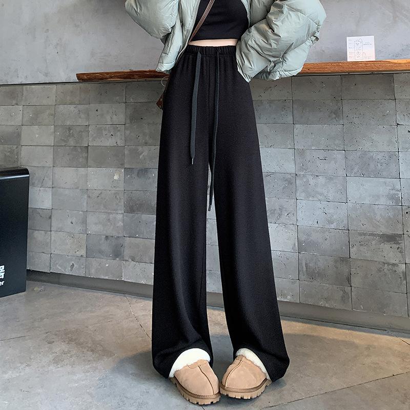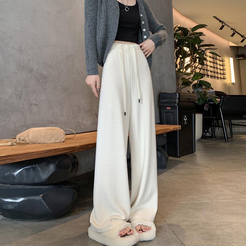 Брюки из клейкого риса с высокой талией, вязаные широкие брюки для женщин на осень и зиму, ниспадающие высококачественные брюки, текстурные тонкие вязаные брюки, брюки в пол