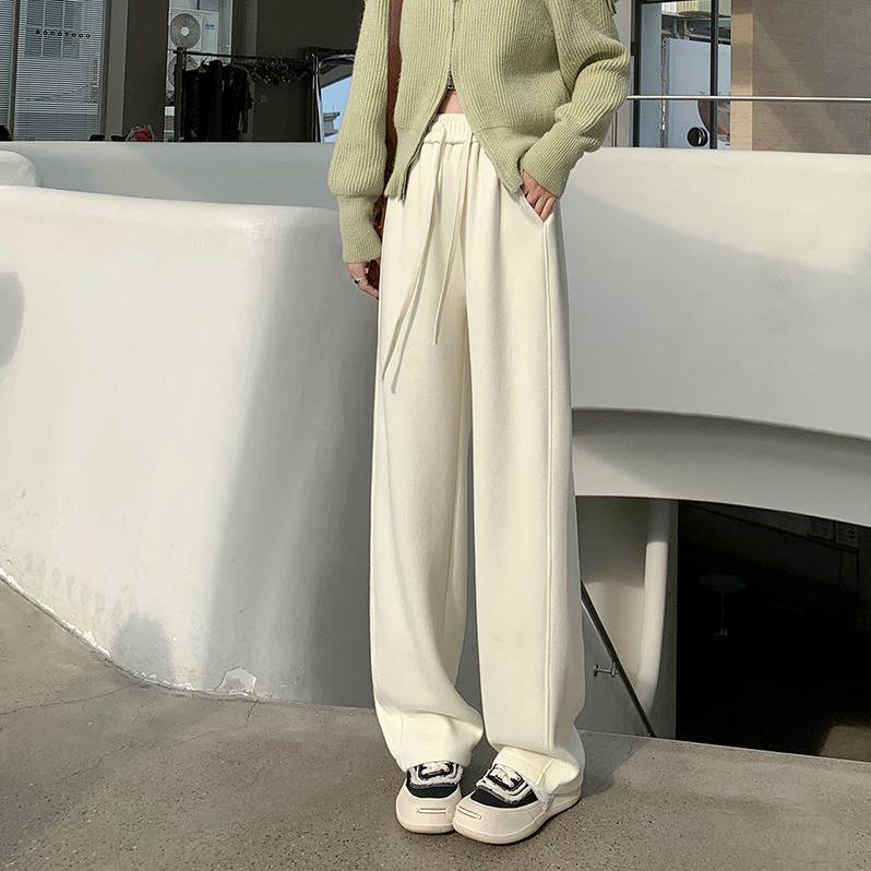 Вязаные женские брюки палаццо Зимний новый стиль Плюшевые с высокой посадкой Драпированные брюки-шаровары Мягкие и эластичные Повседневные Теплые Прямые Брюки из клейкого риса