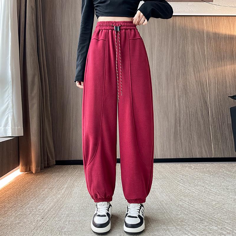 Корсетные спортивные брюки с высокой талией, женские осенне-зимние бархатные брюки-харлан, маленькие свободные и тонкие