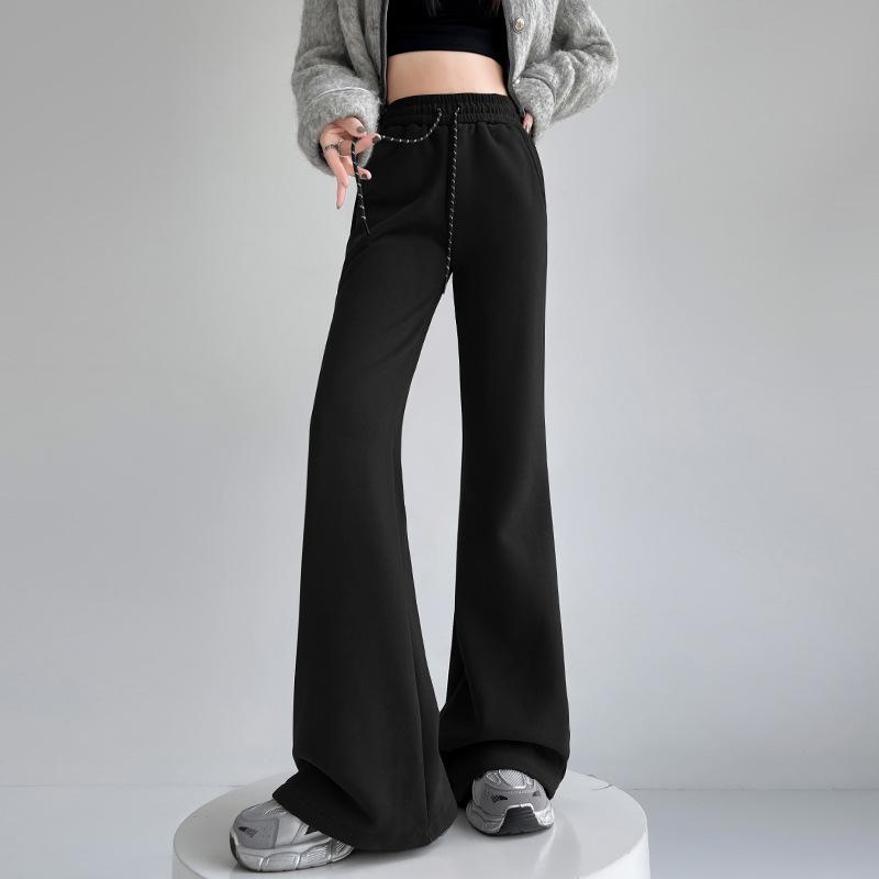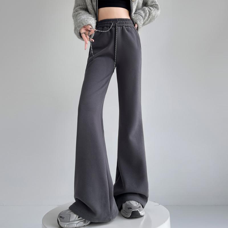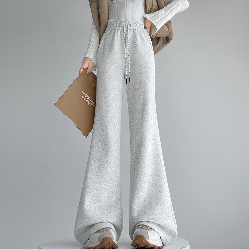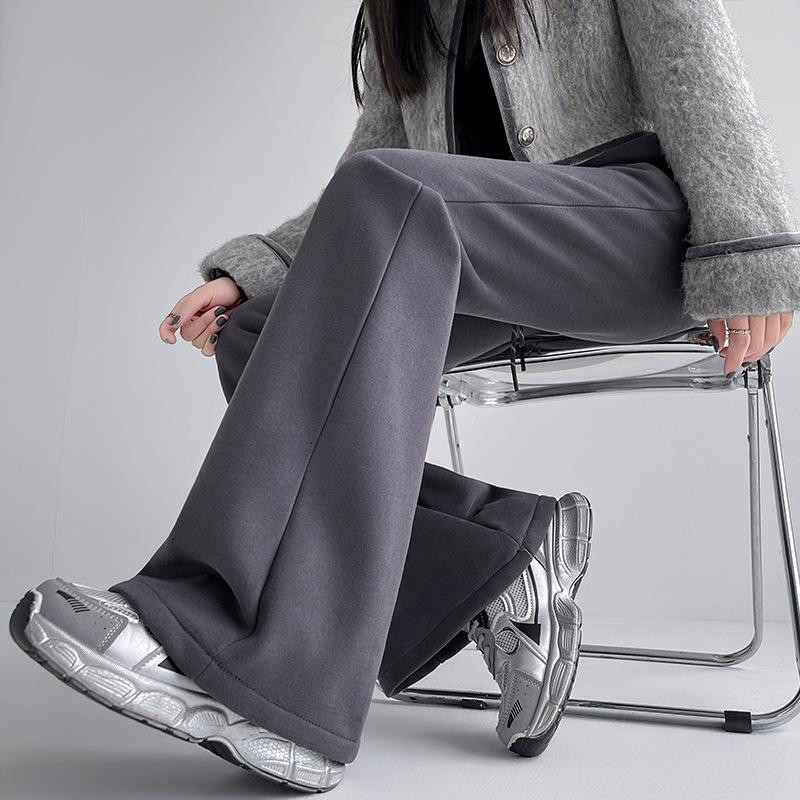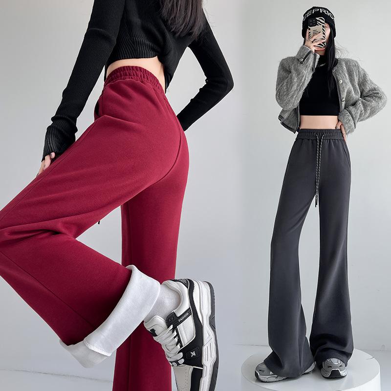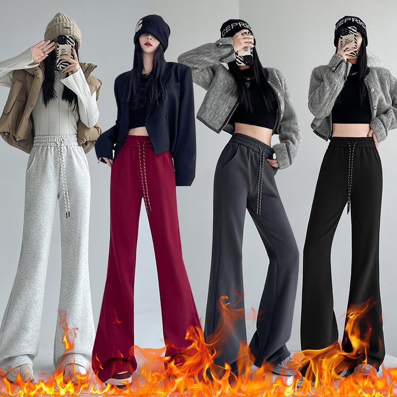 Флисовые Утепленные Брюки Микро-клеш для Женщин Осень-Зима Новые С Высокой Посадкой Тонкие Драпирующиеся Повседневные