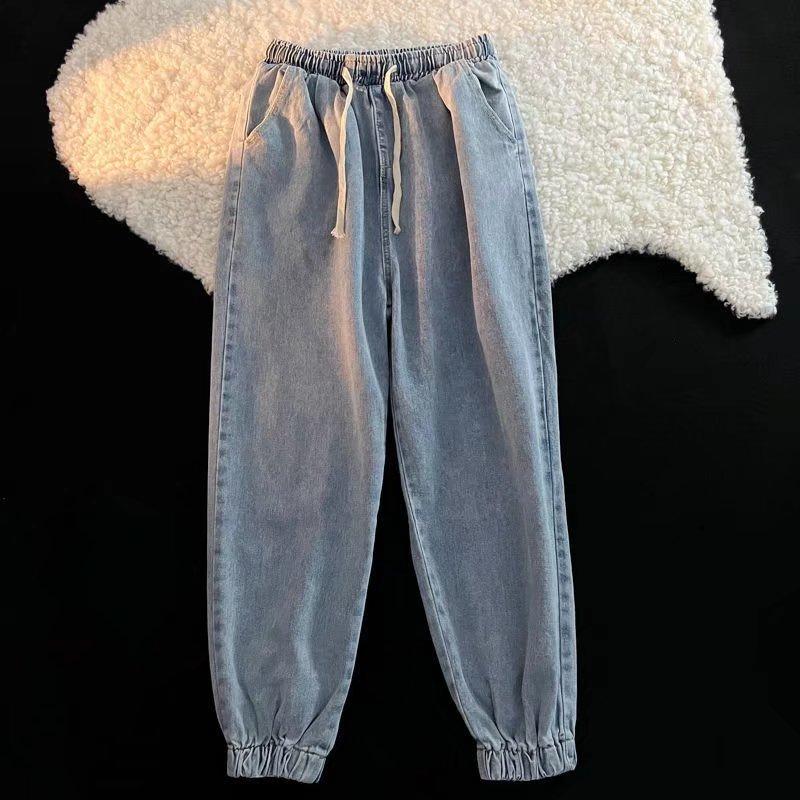 Женские повседневные мешковатые джинсы-шаровары весна-осень эластичные с высокой талией свободные джинсовые брюки корейская мода большие размеры 100 кг винтажные вакерос
