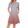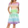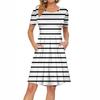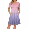 Женское платье с коротким рукавом, плиссированное, свободное, повседневное платье с карманами, платья длиной до колена