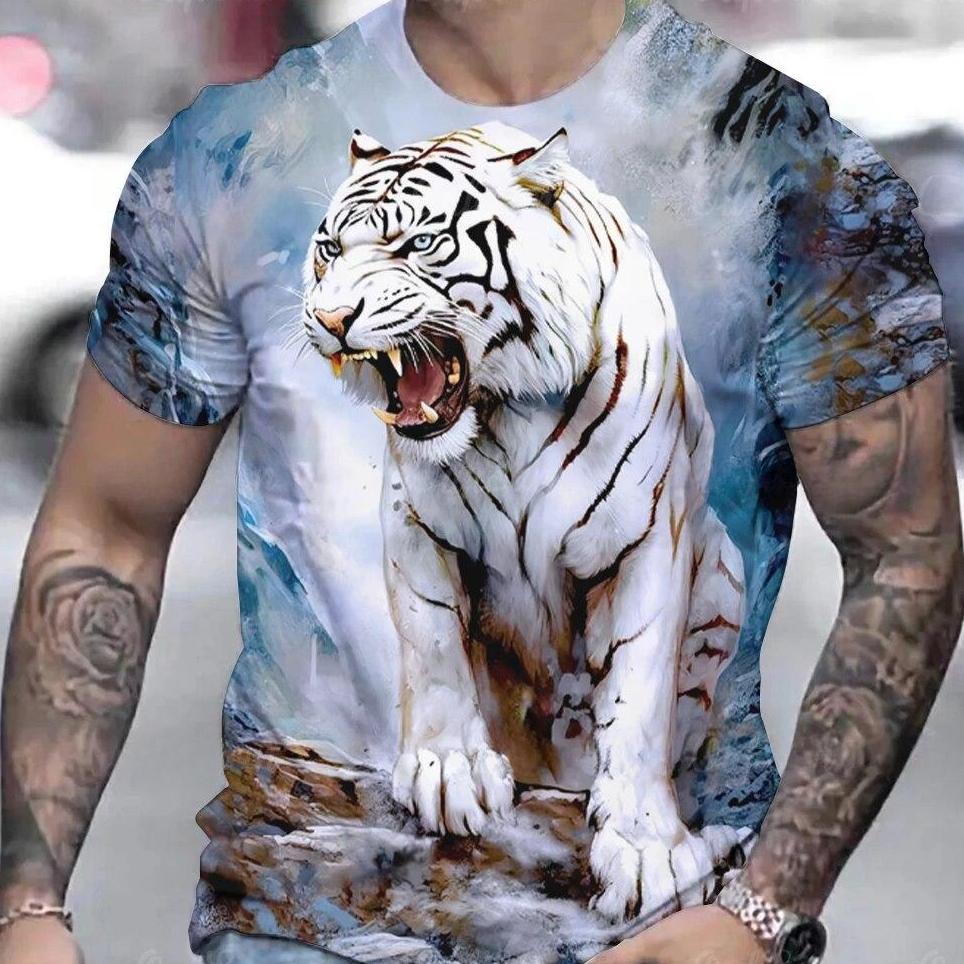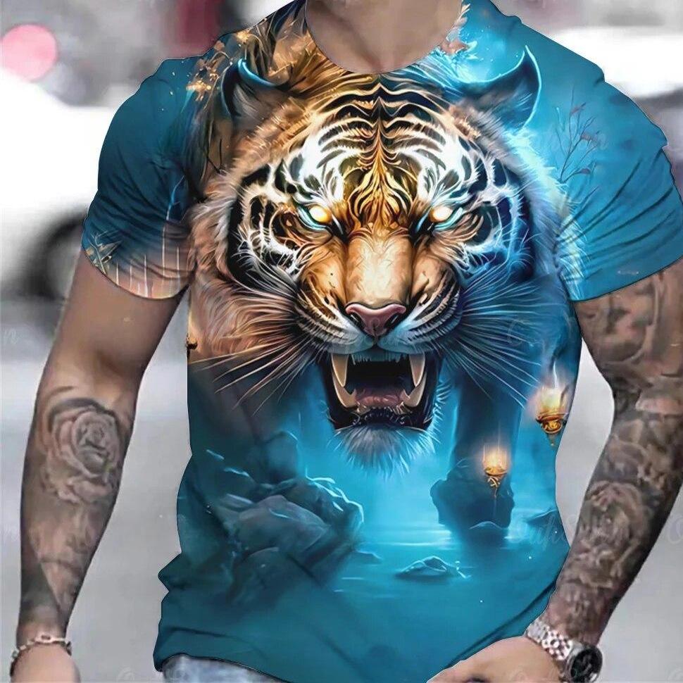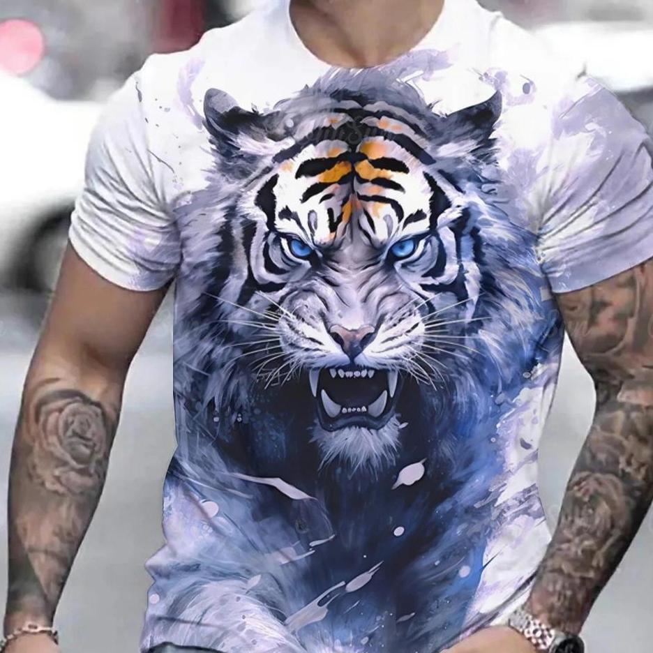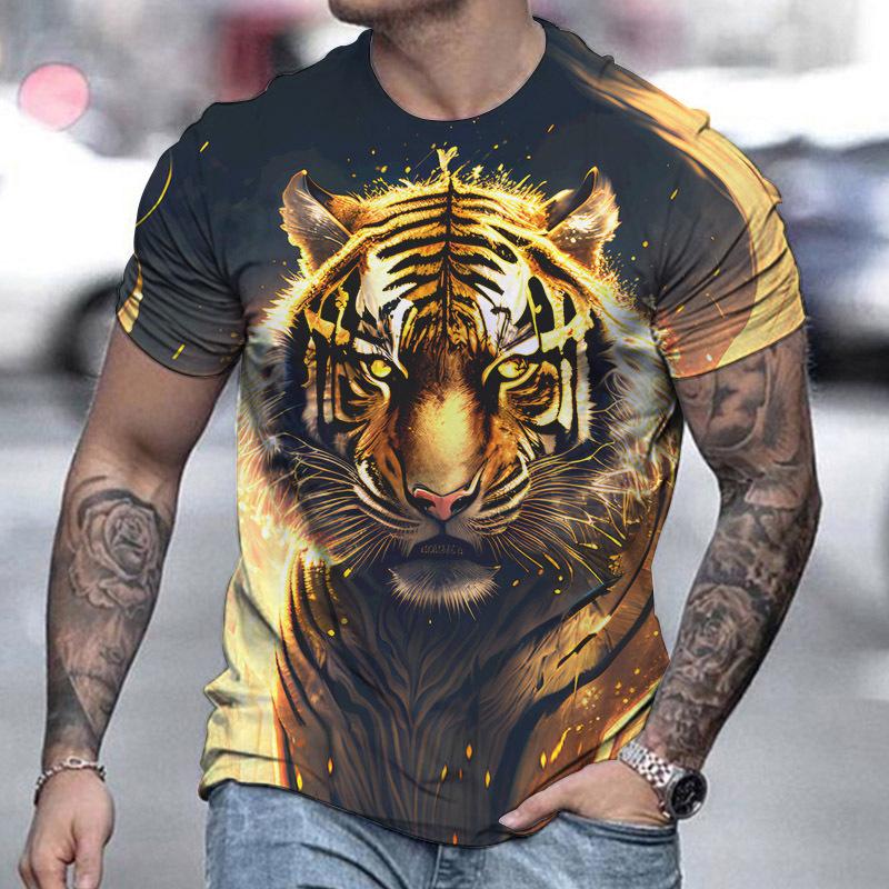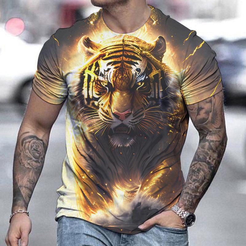 Футболка с принтом тигра в 3D для пары, мужская футболка с 3D принтом, прямая поставка, короткий рукав, футболка с круглым вырезом, модная повседневная брендовая футболка