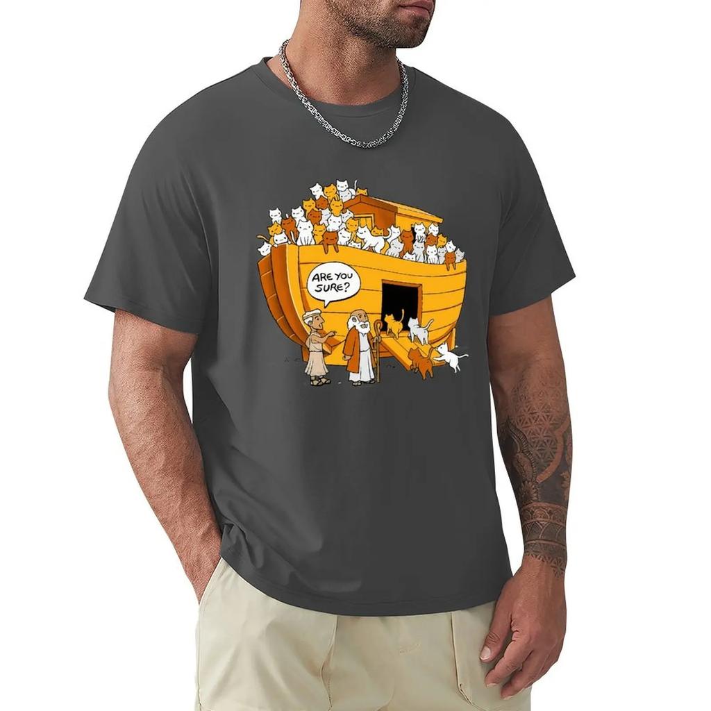 Футболка с изображением кота из мультфильма «Ноев ковчег» Футболка с коротким рукавом Harajuku Футболка с графикой из 100% хлопка