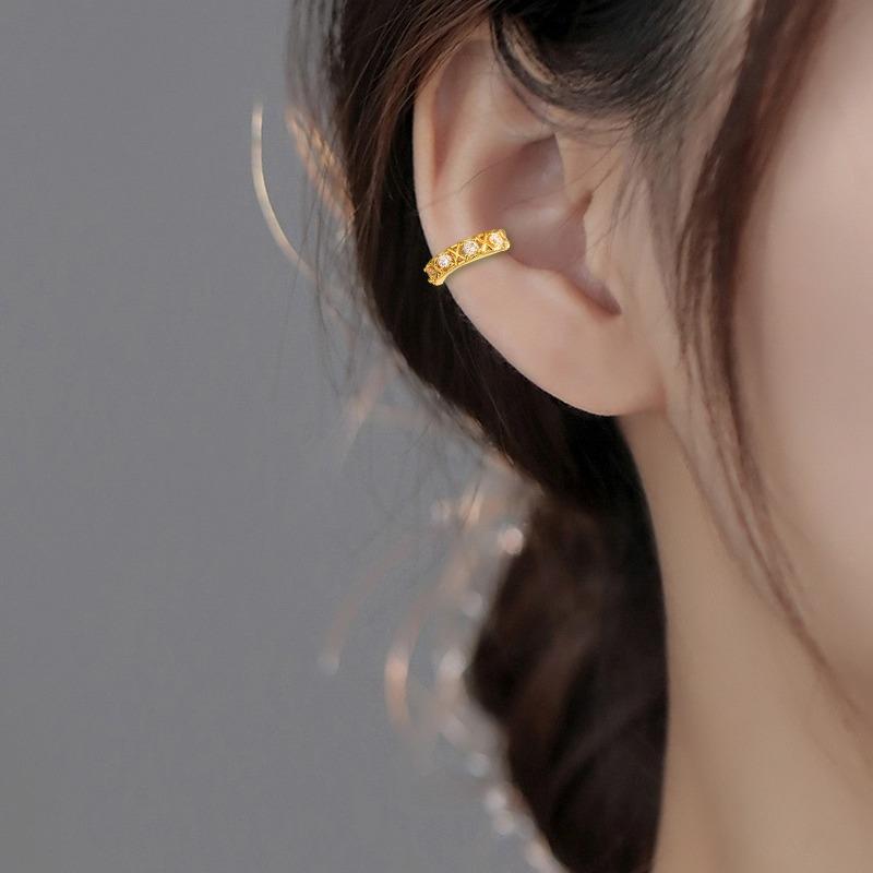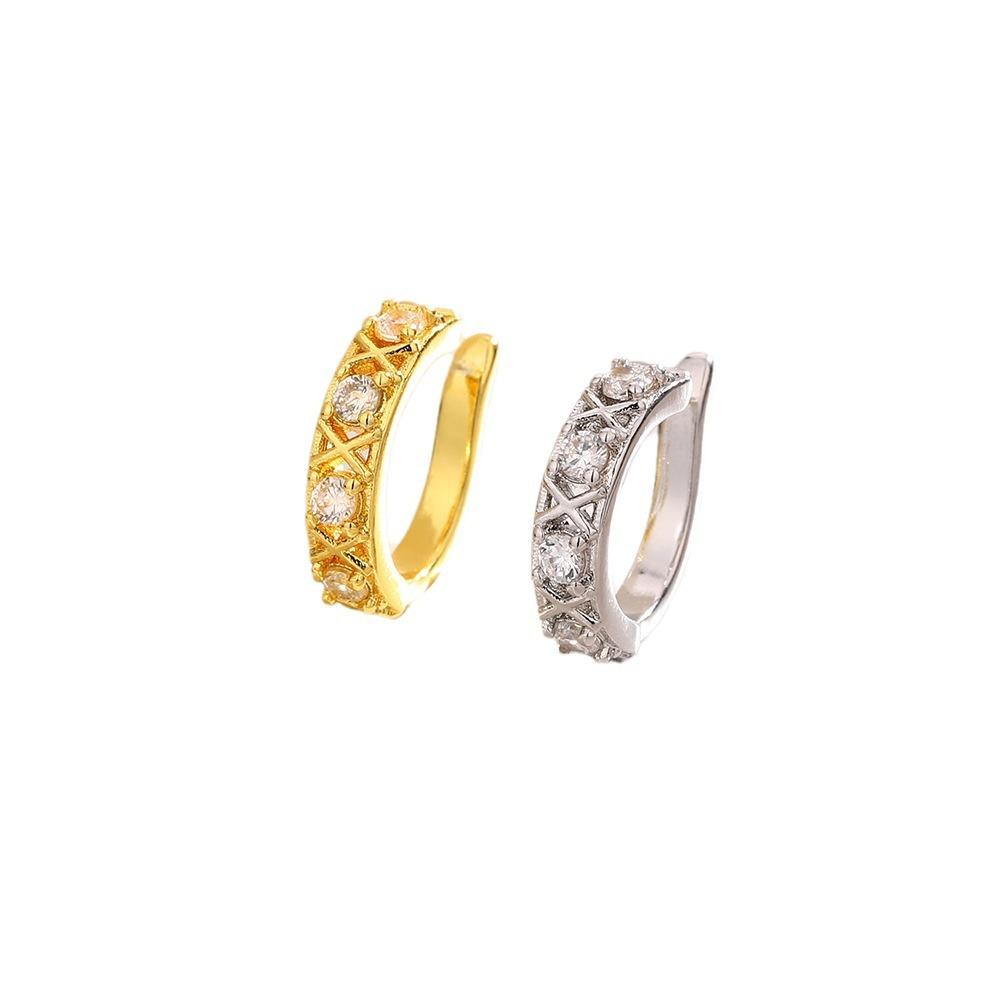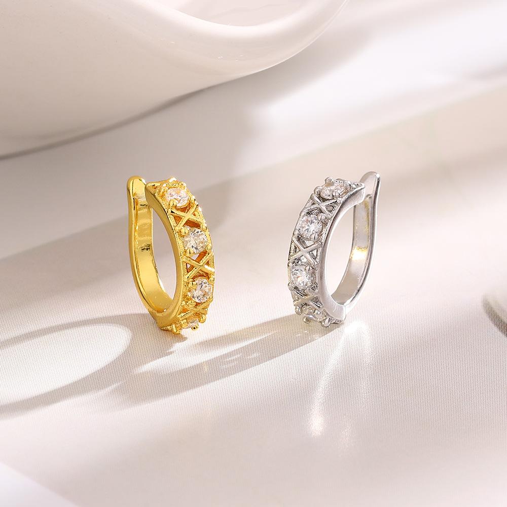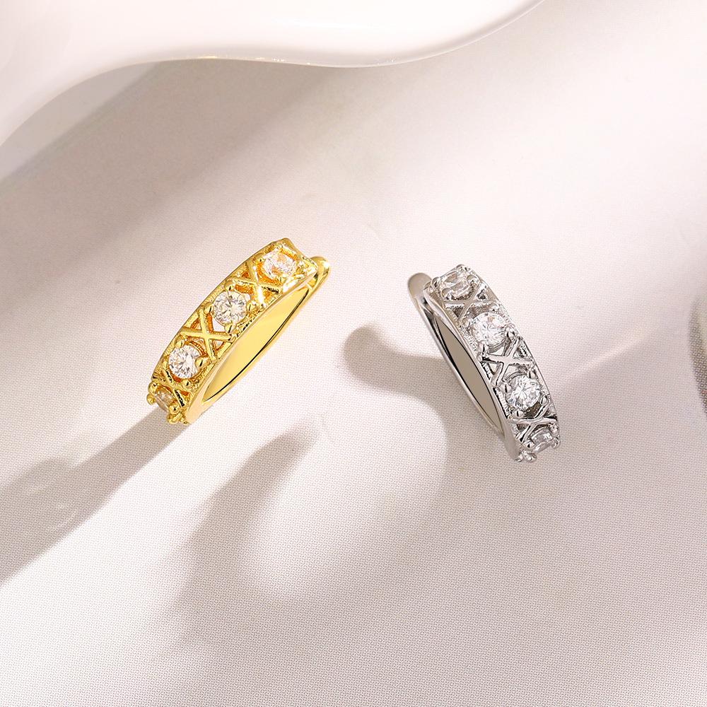 Клипсы для ушей с полыми бриллиантами, без отверстий для ушей, простые и универсальные, темпераментные, в форме креста, с бриллиантами, популярные серьги из циркония.