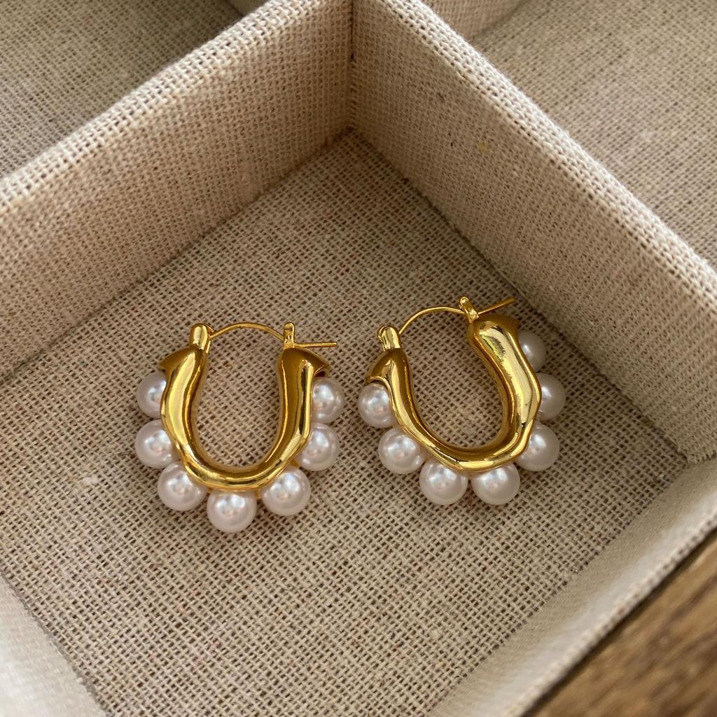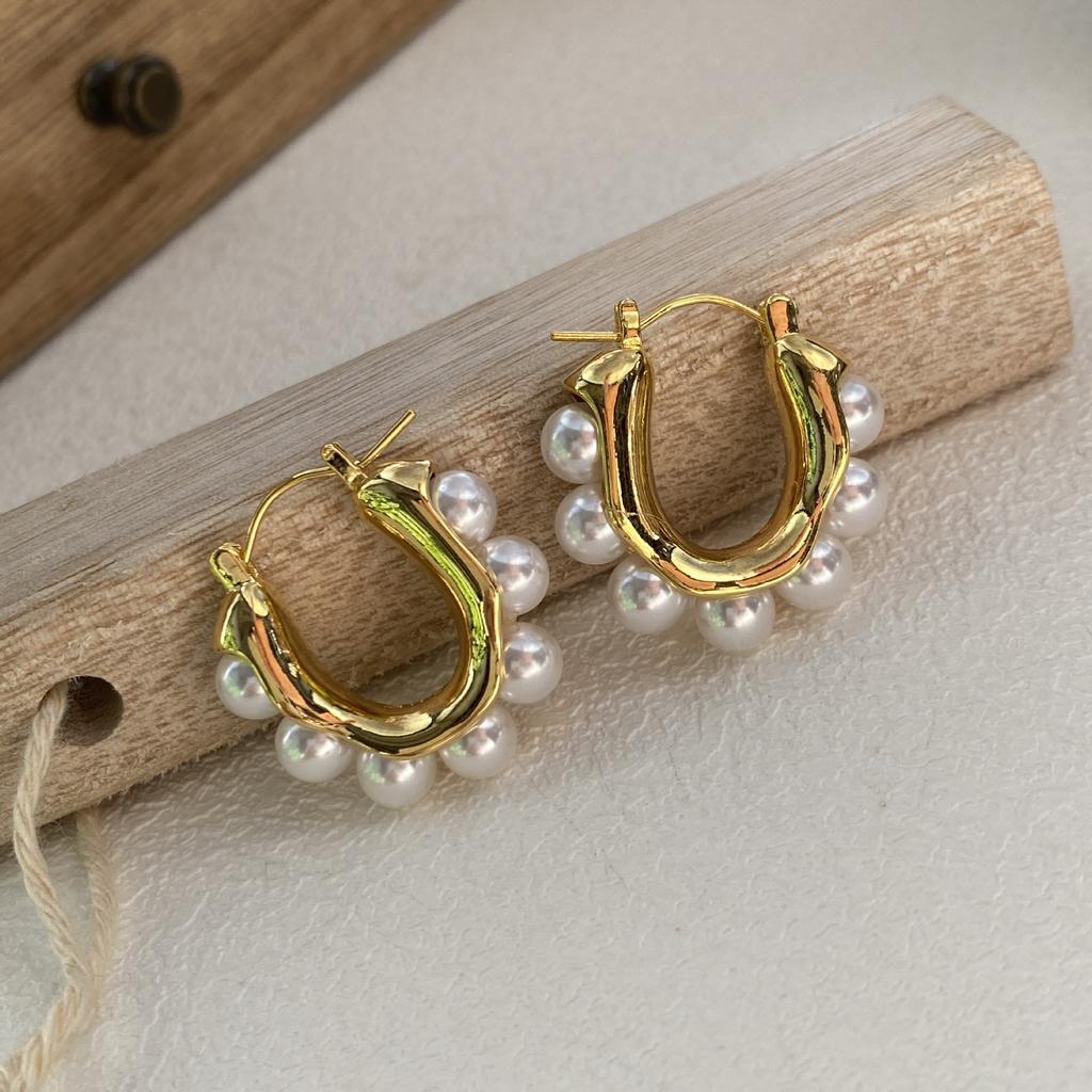 Французские ретро серьги-гвоздики U-образной формы с жемчугом, женские летние, с чувством дизайна, высококлассные, роскошные, темпераментные