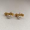 Золотые серьги-гвоздики с жемчугом и бантом, дизайн, элитный, легкий, роскошный, темперамент, сладкие серьги, красивые серьги — купить товар онлайн с бесплатной доставкой по всему миру!