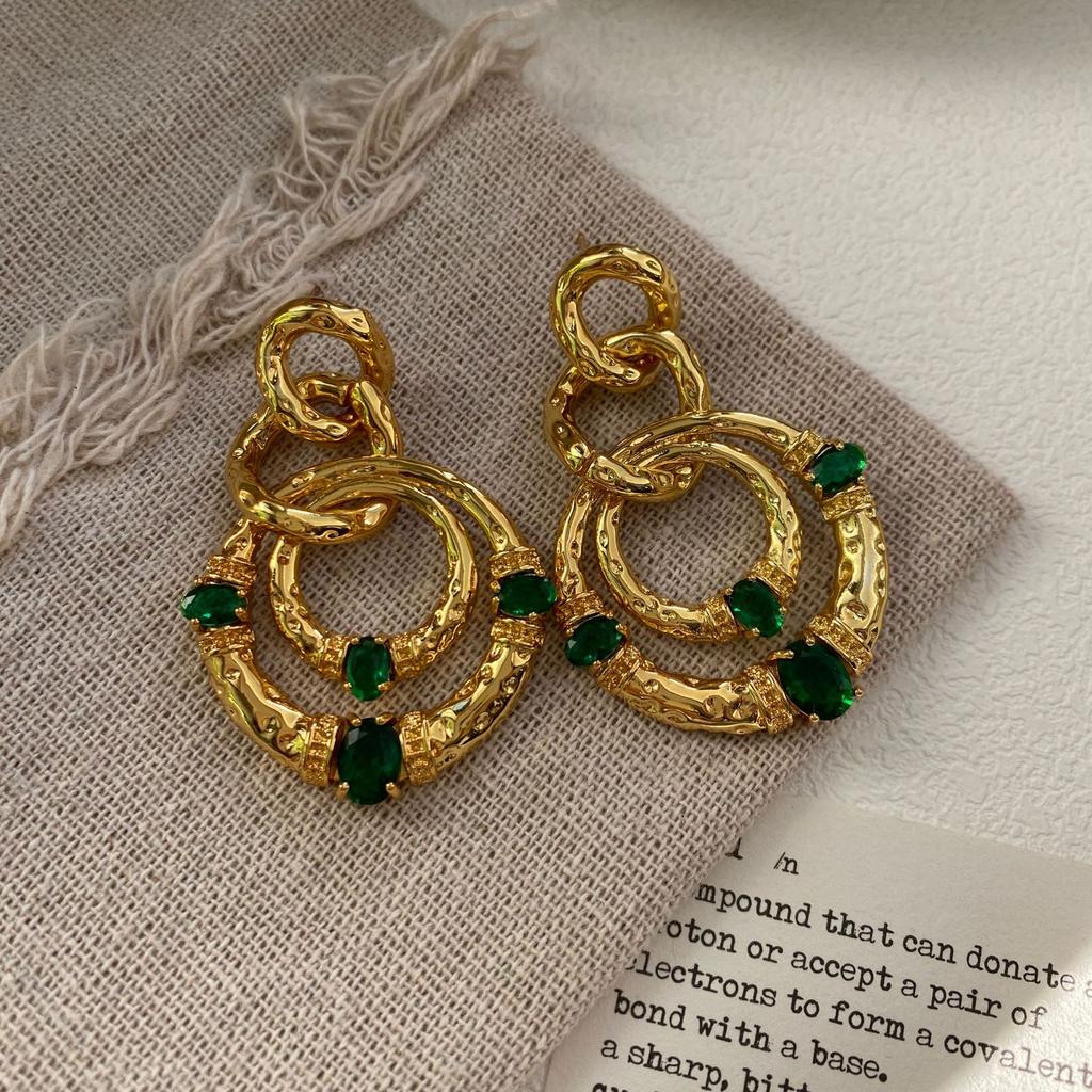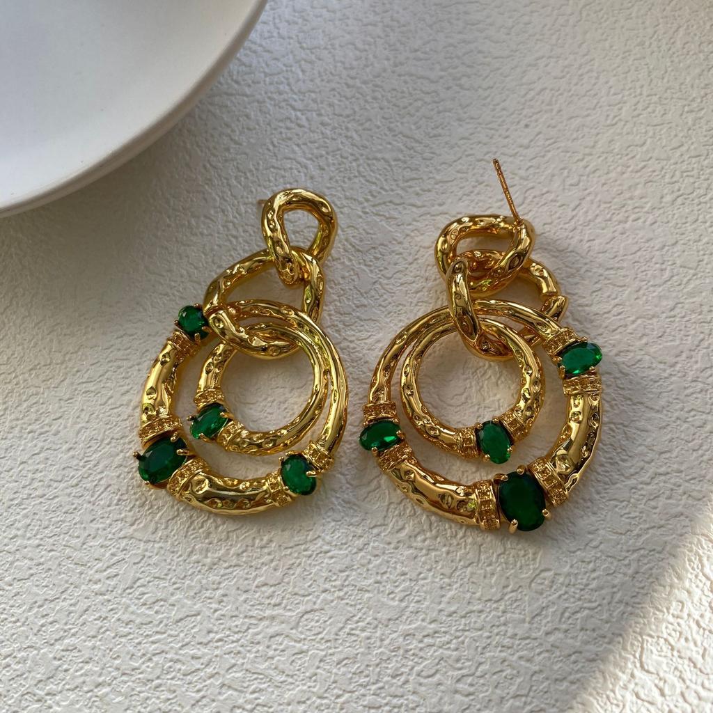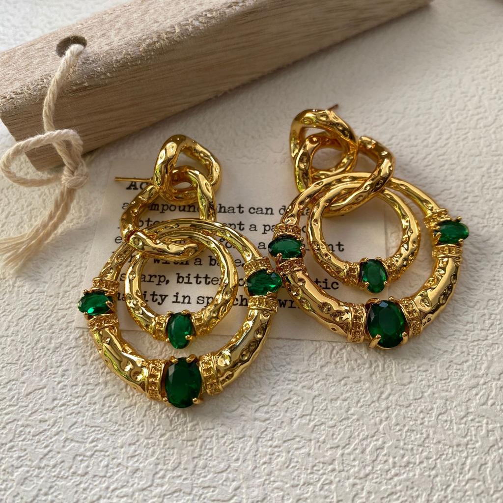 Премиальные серьги женские ретро сращивание изумрудные серьги-гвоздики текстура индивидуальность тренд преувеличенные серьги